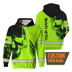 Hi Vis Hoodie Reflective Black Skull USA Flag Custom Name Safety Workwear