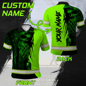 Hi Vis Shirt Reflective Green Skull Custom Name Safety Workwear