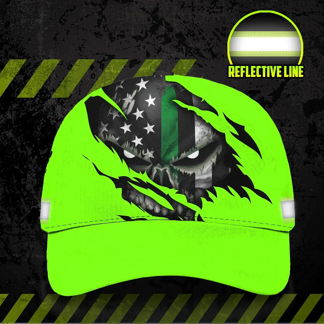 3D Printed Classic Cap Green Skull US Flag Custom Name Safety Workwear For Workers, Runners, Cyclists, Patriotic