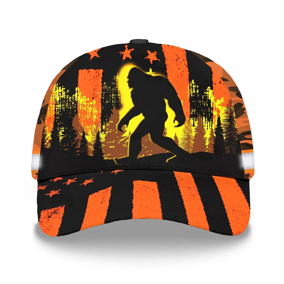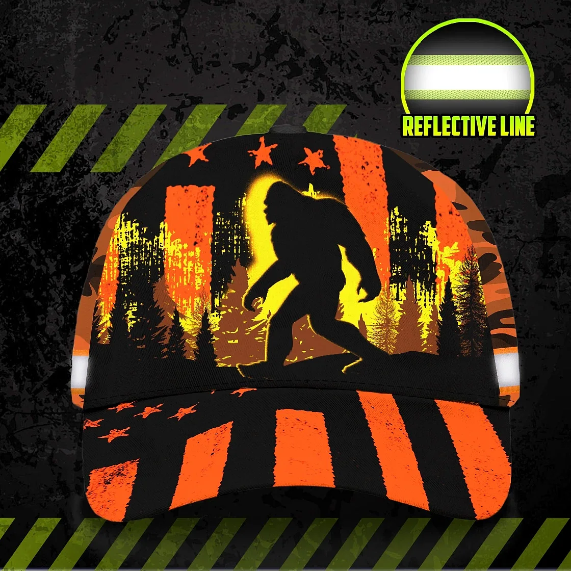 3D Printed Classic Cap Reflective Orange USA Flag With BigFoot