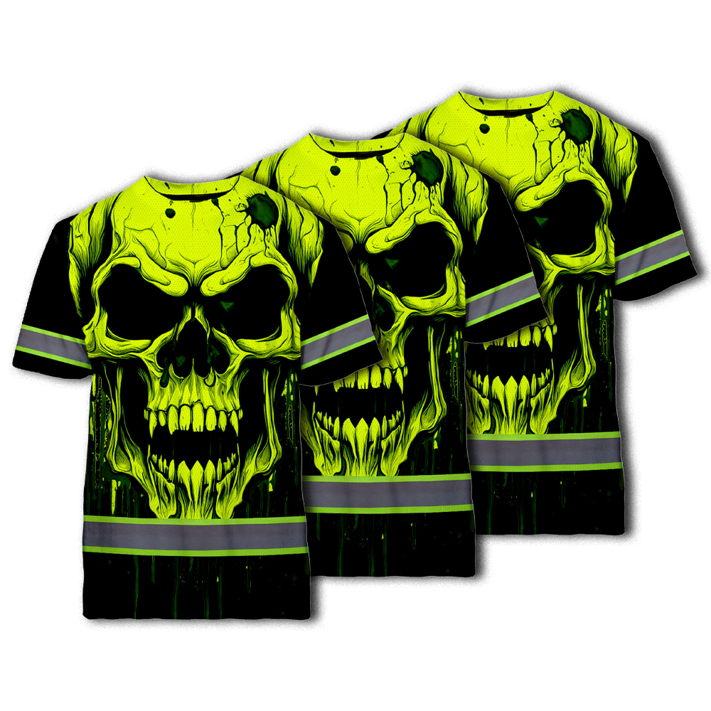 Choose Pack Hi Vis Shirts Reflective Lime Neon Skull Custom Name Safety Workwear For Runners, Cyclists, Skull Lover