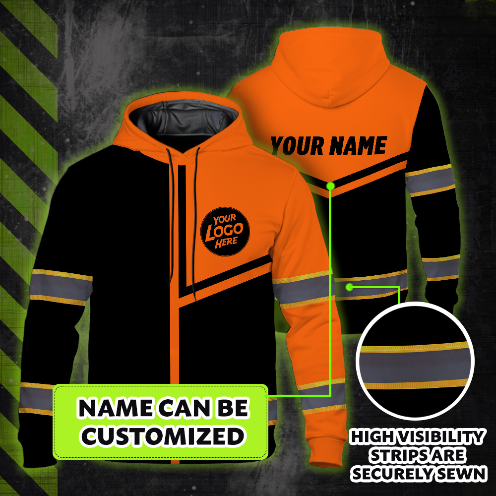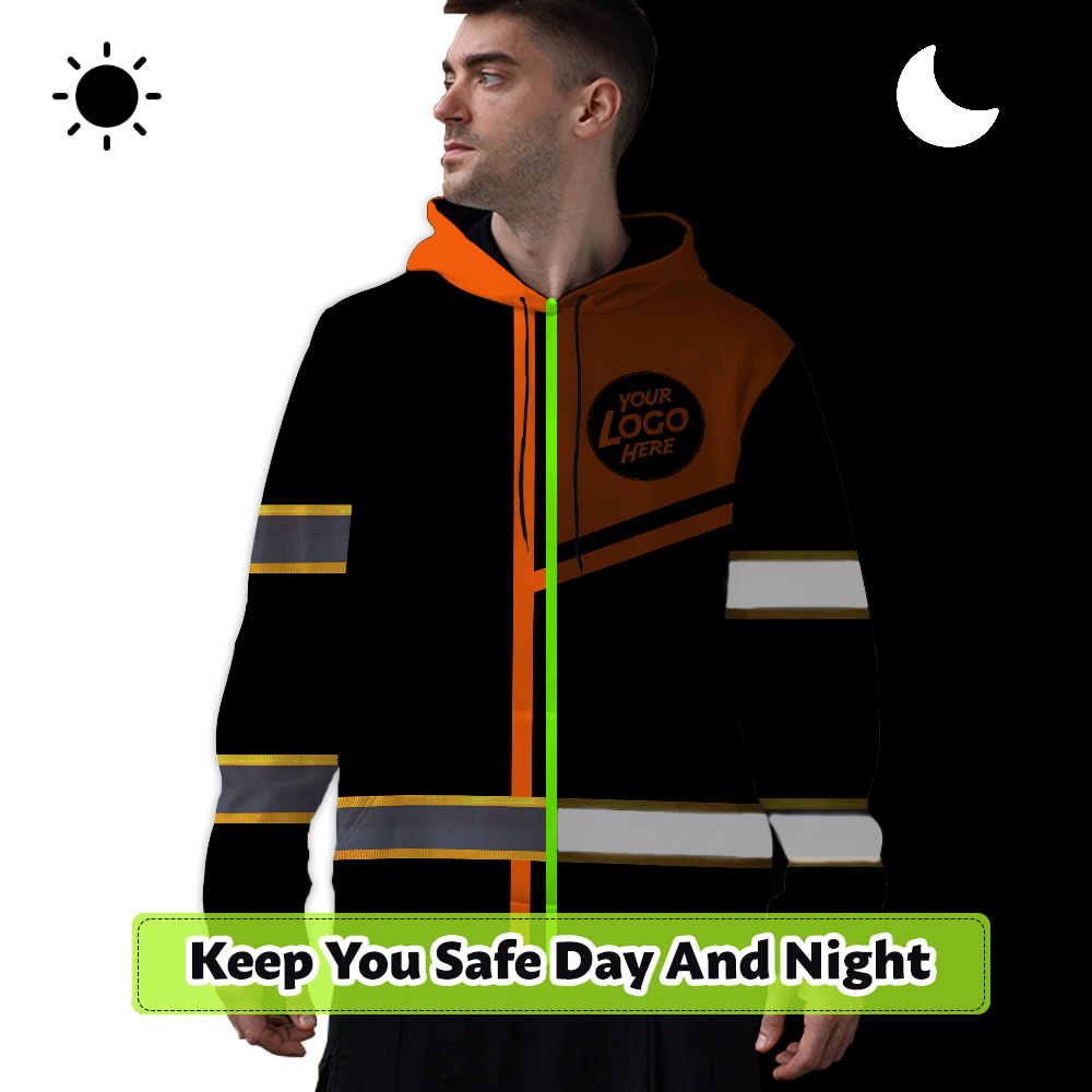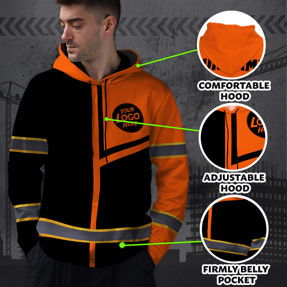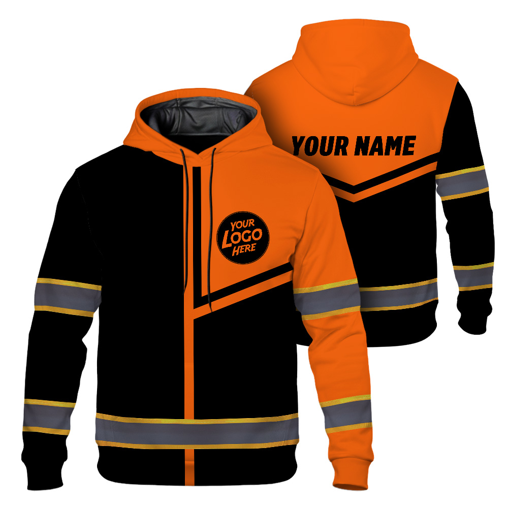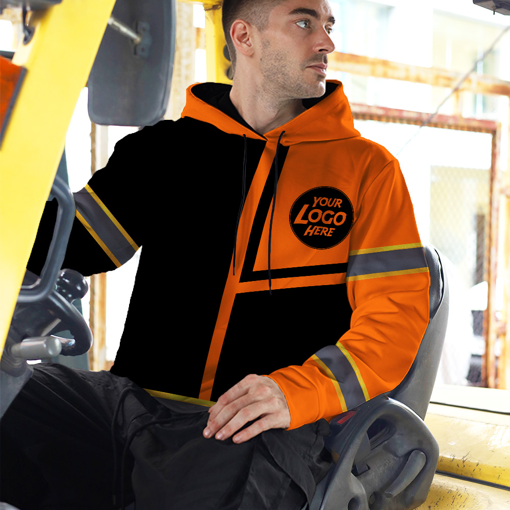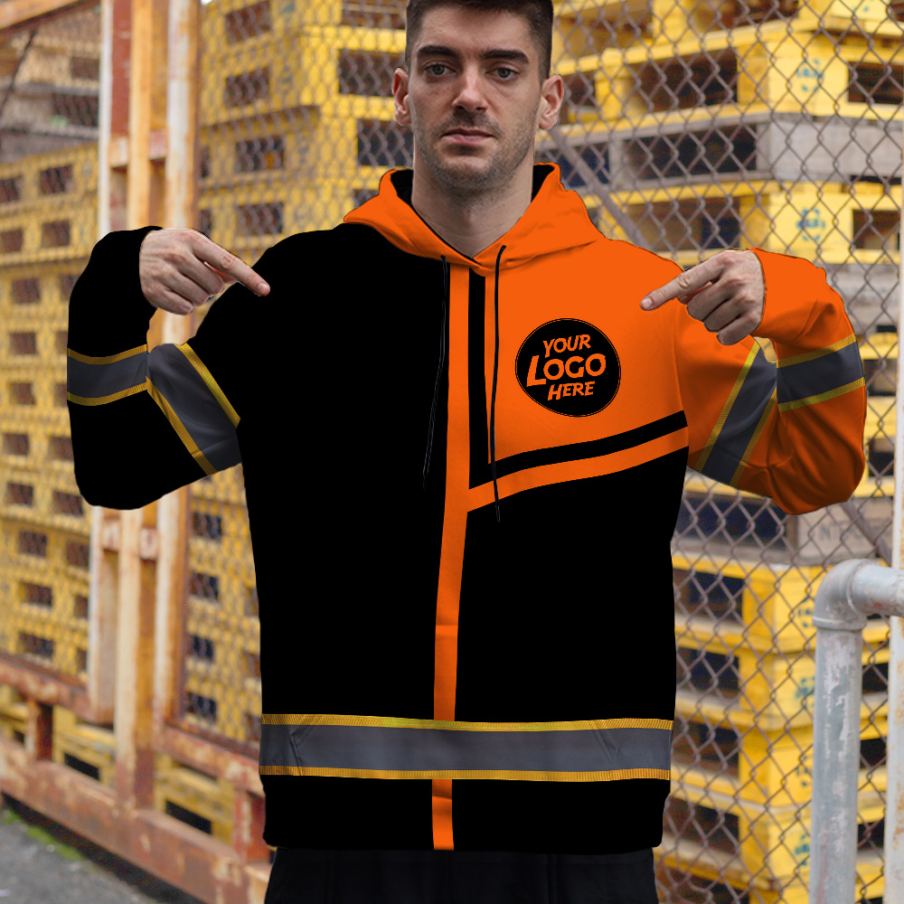 Custom Company Logo Reflective Hi Vis Hoodies - Orange Neon Safety Workwear
