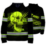 Hi Vis Hoodie Reflective Tapes Lime Skull And US Flag