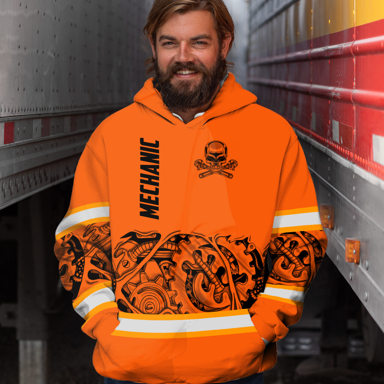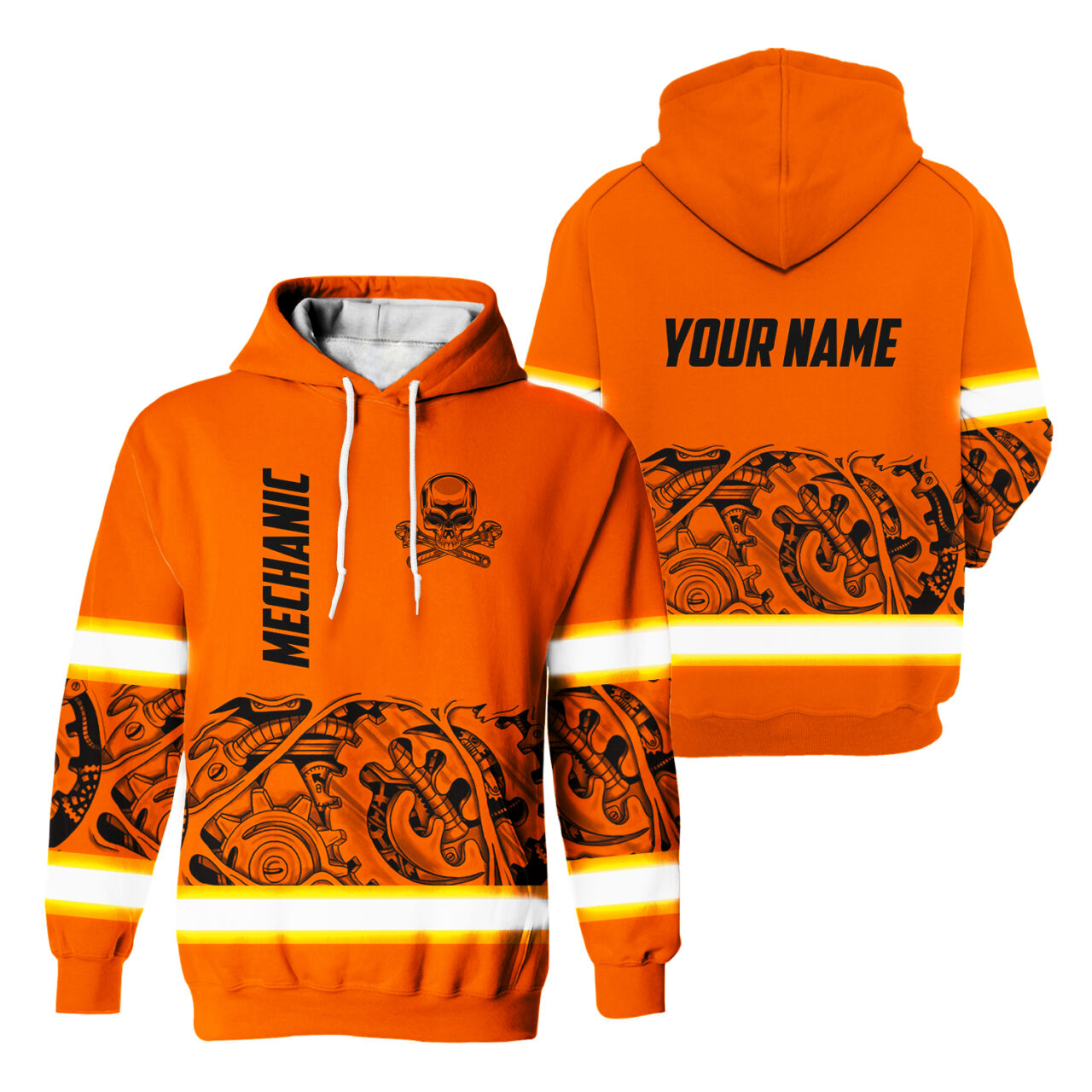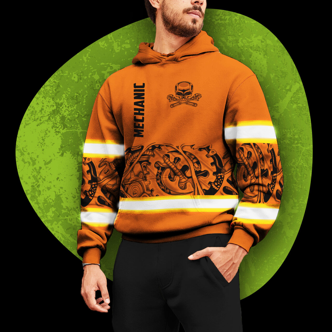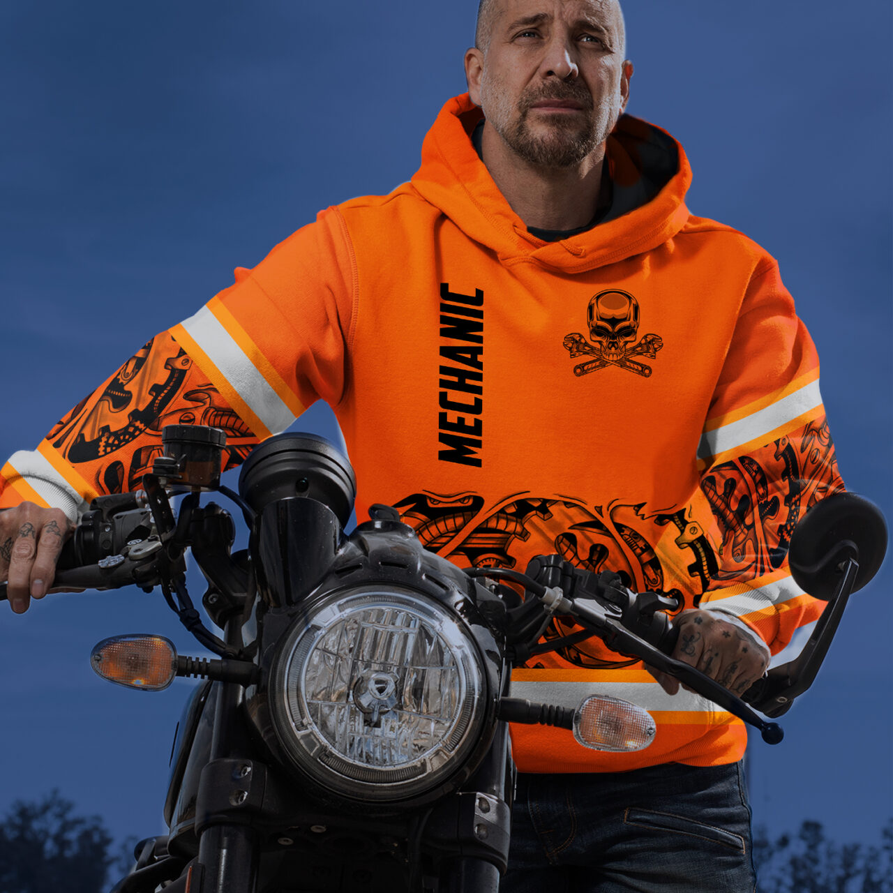Custom Mechanic Skull Reflective Hi Vis Hoodies - Safety Workwear