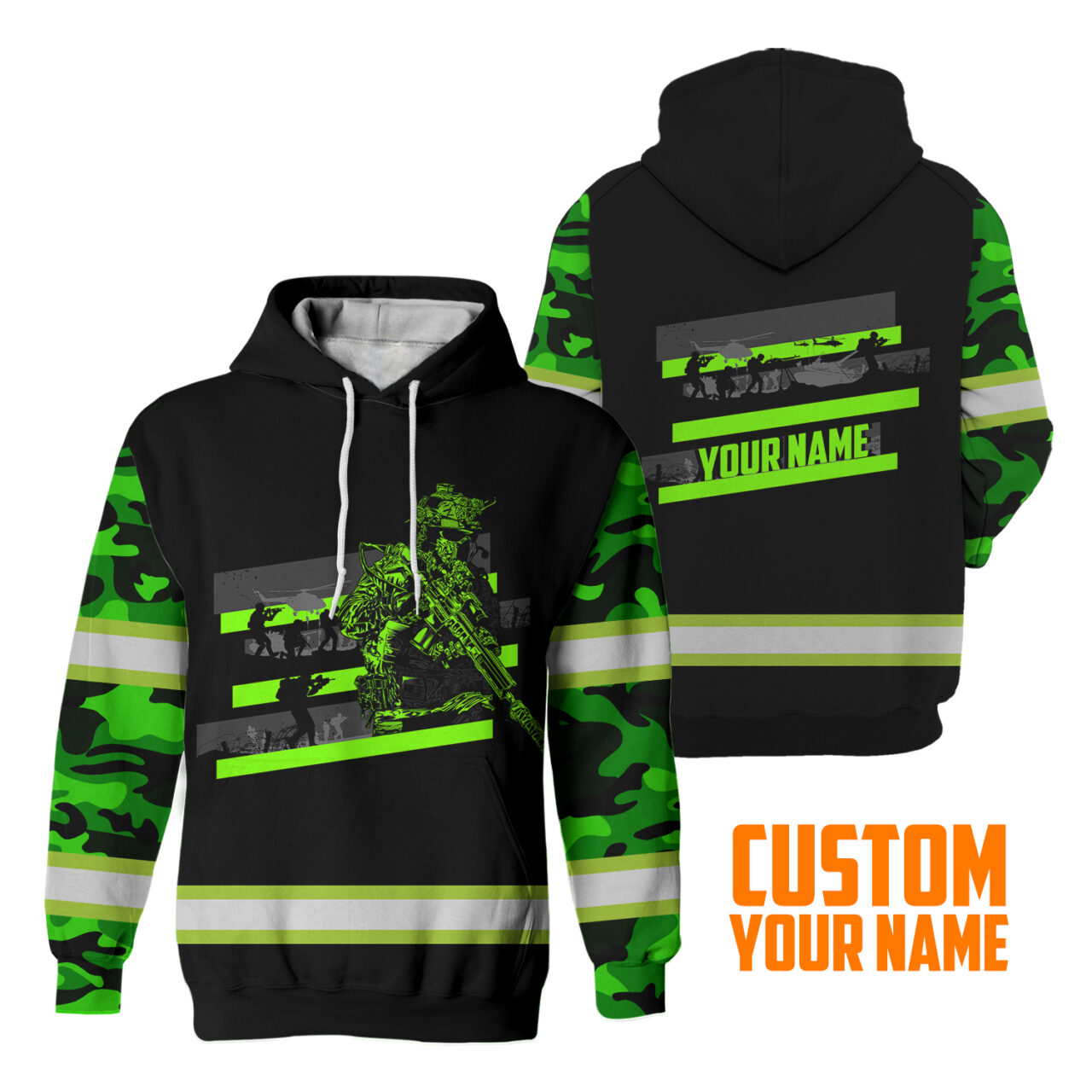 Custom Military Name Reflective Hi Vis Hoodies - Patriotic Safety Workwear