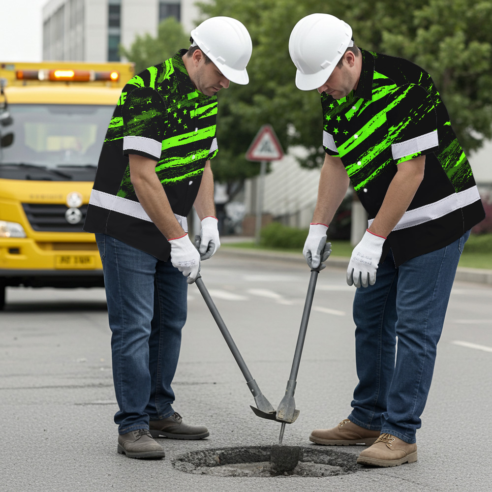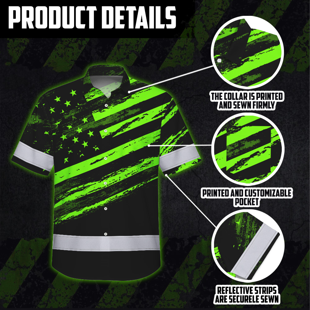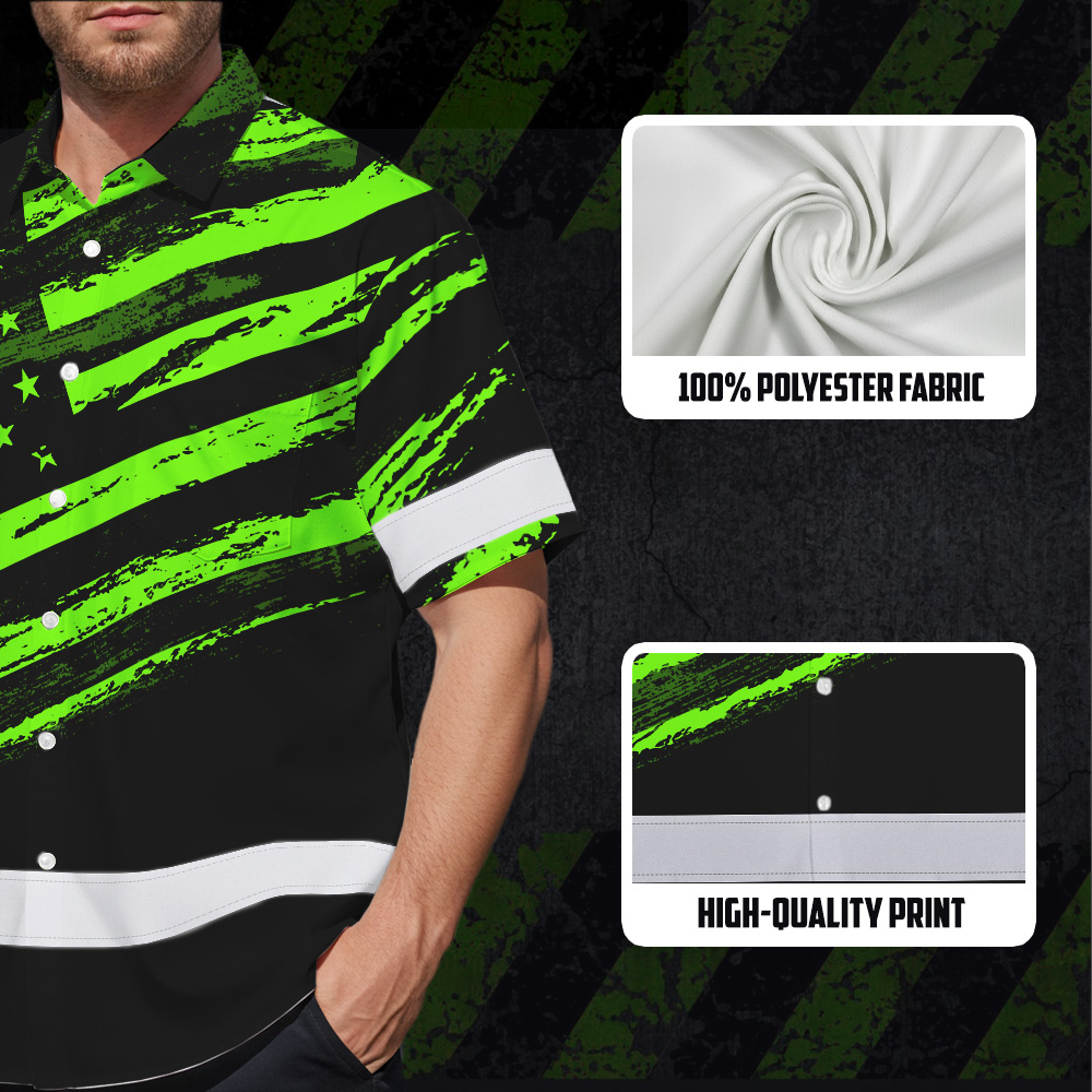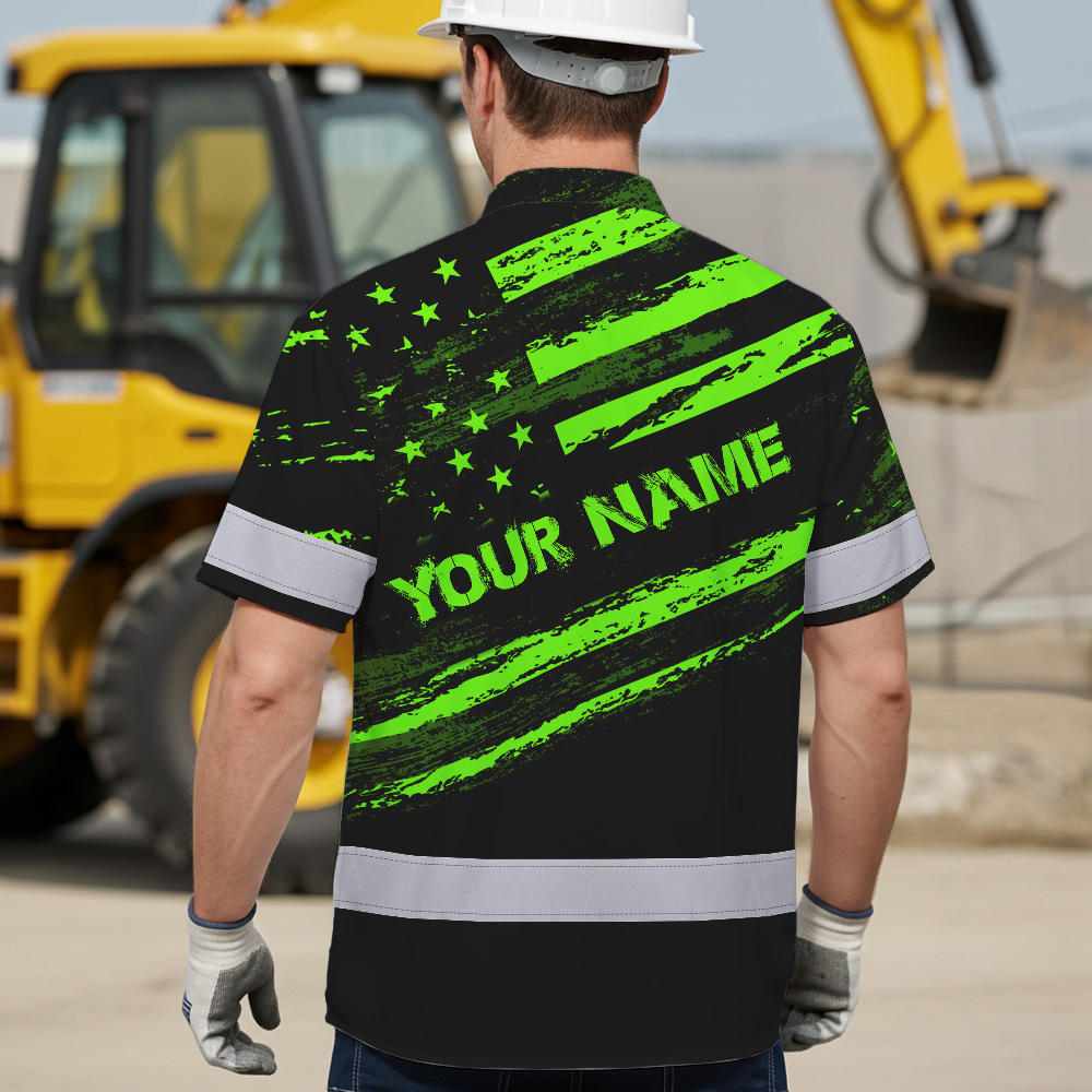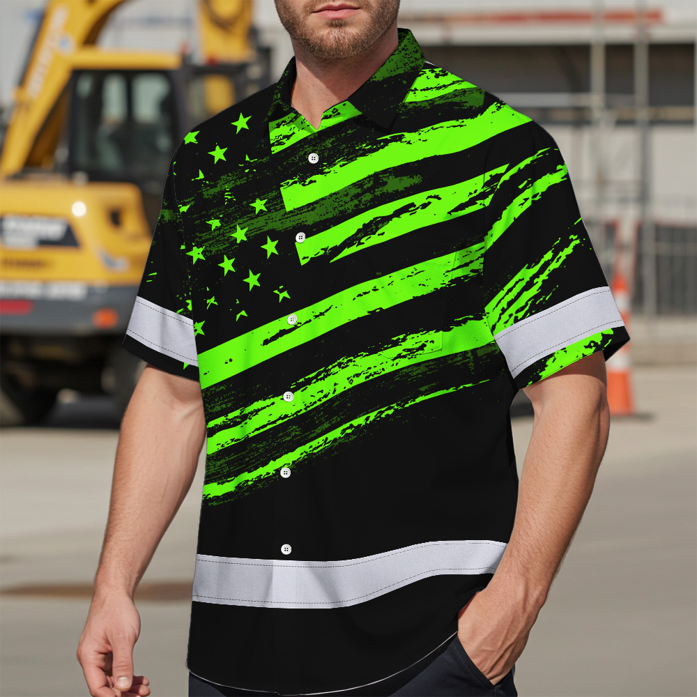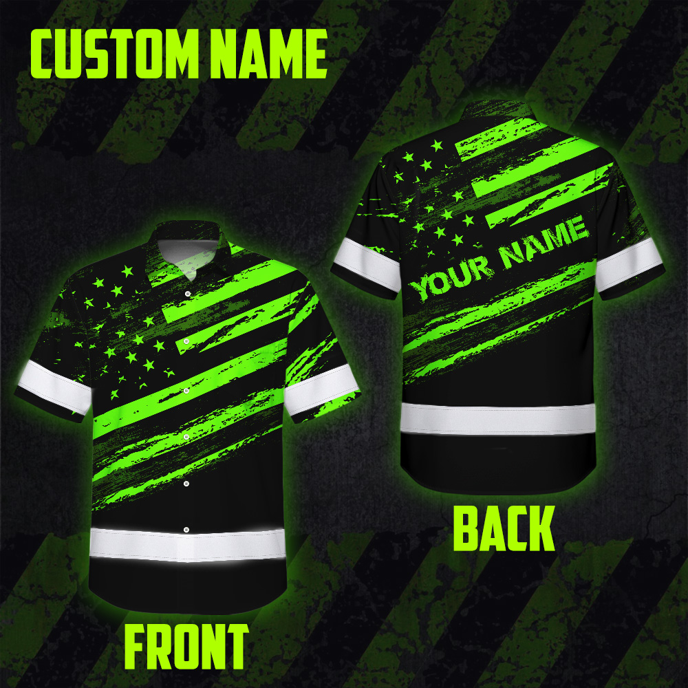 Custom Name Reflective Hi Vis Hawaiian Shirt - US Flag Patriotic Safety Workwear