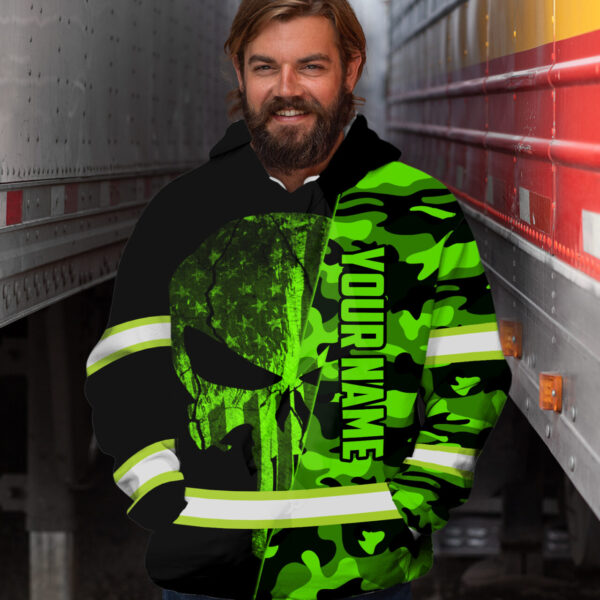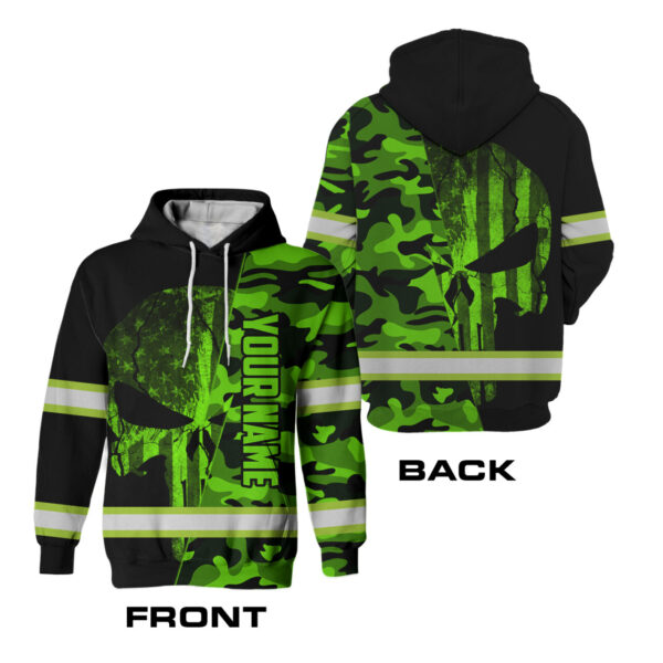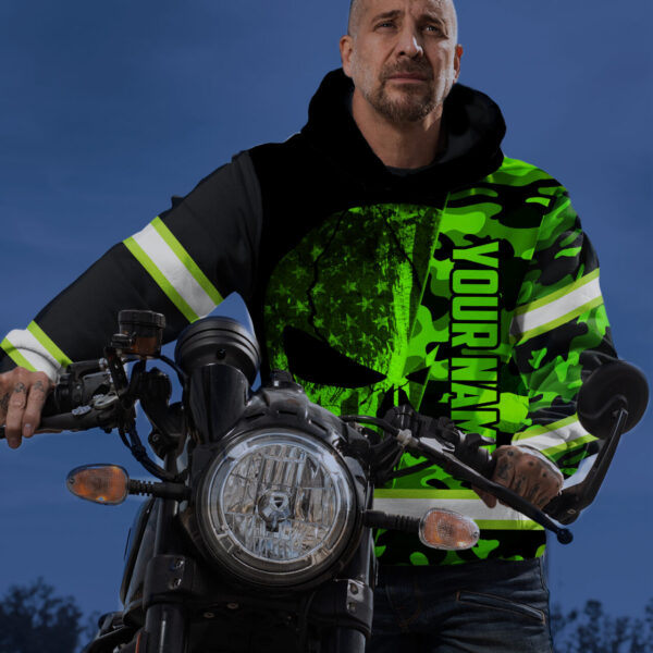 Hi Vis Hoodie Reflective US Flag Black Green Custom Name Safety Workwear