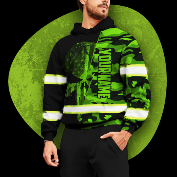 Custom Name Reflective Hi Vis Hoodie – US Flag Camo Safety Workwear