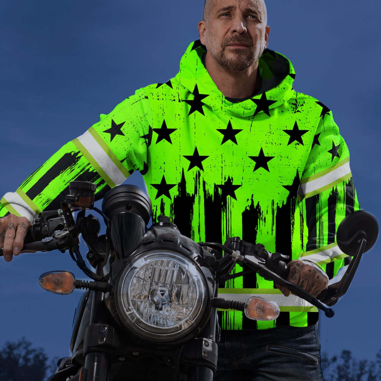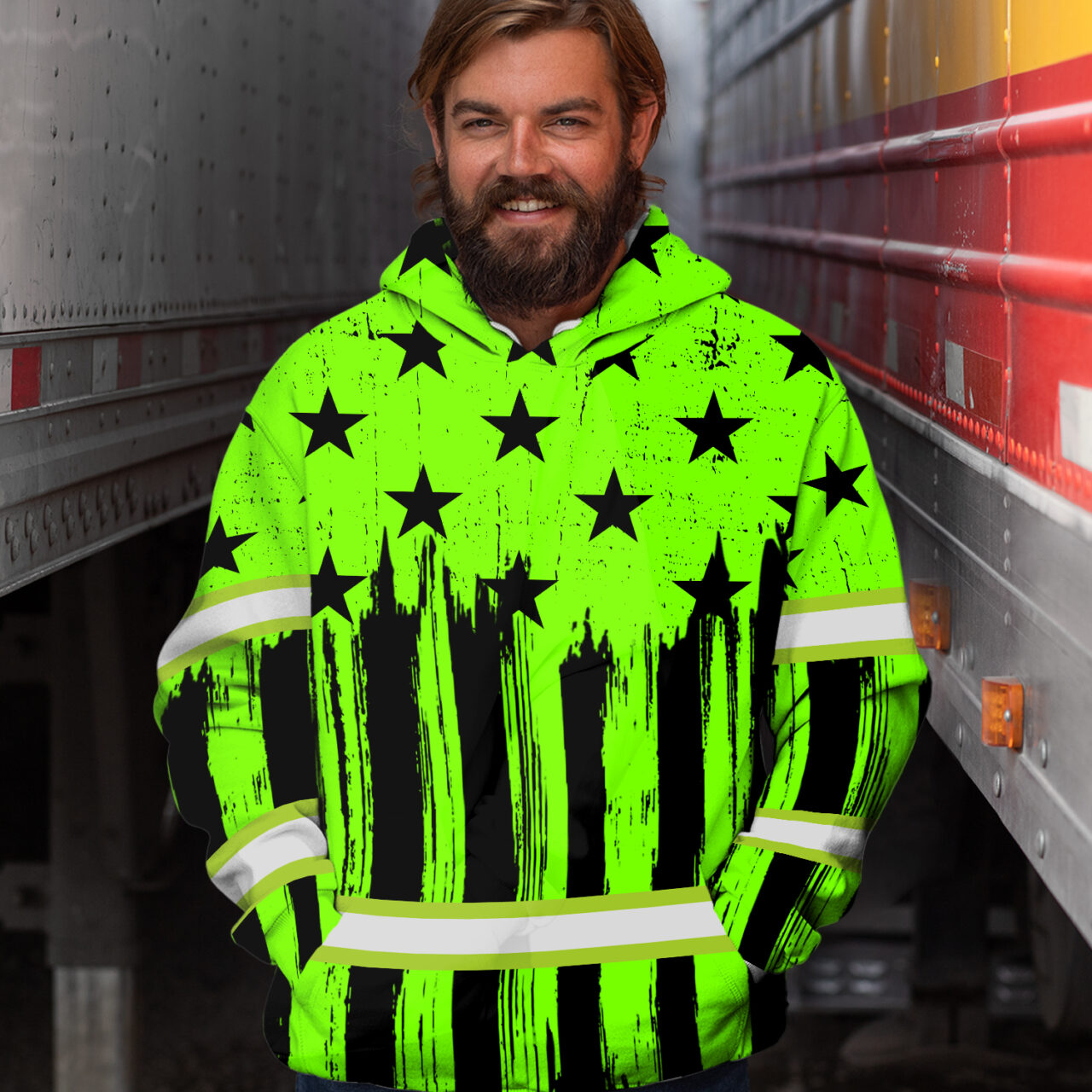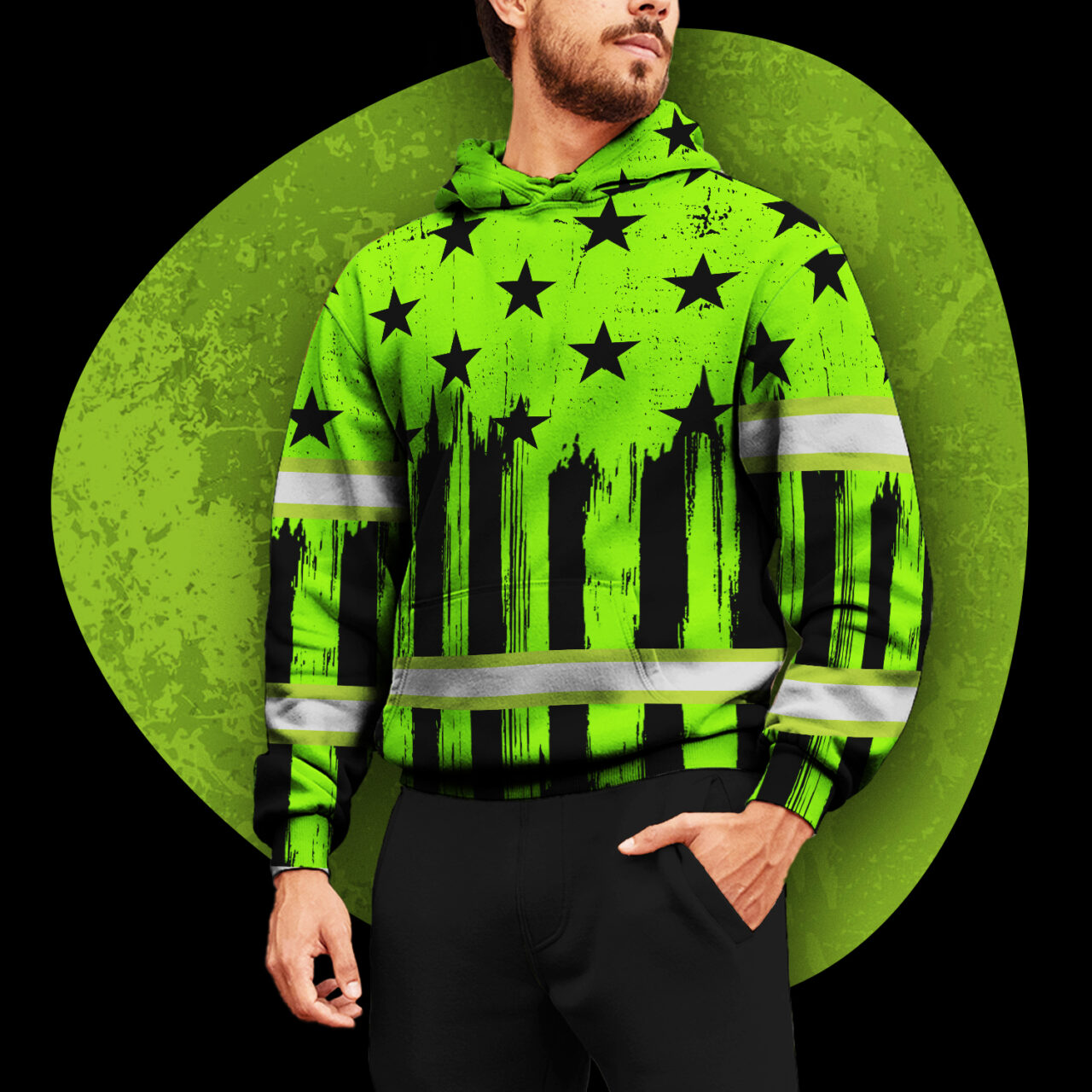 Select options This product has multiple variants. The options may be chosen on the product pageHi Vis Hoodie Reflective USA Flag Green Neon Safety Workwear