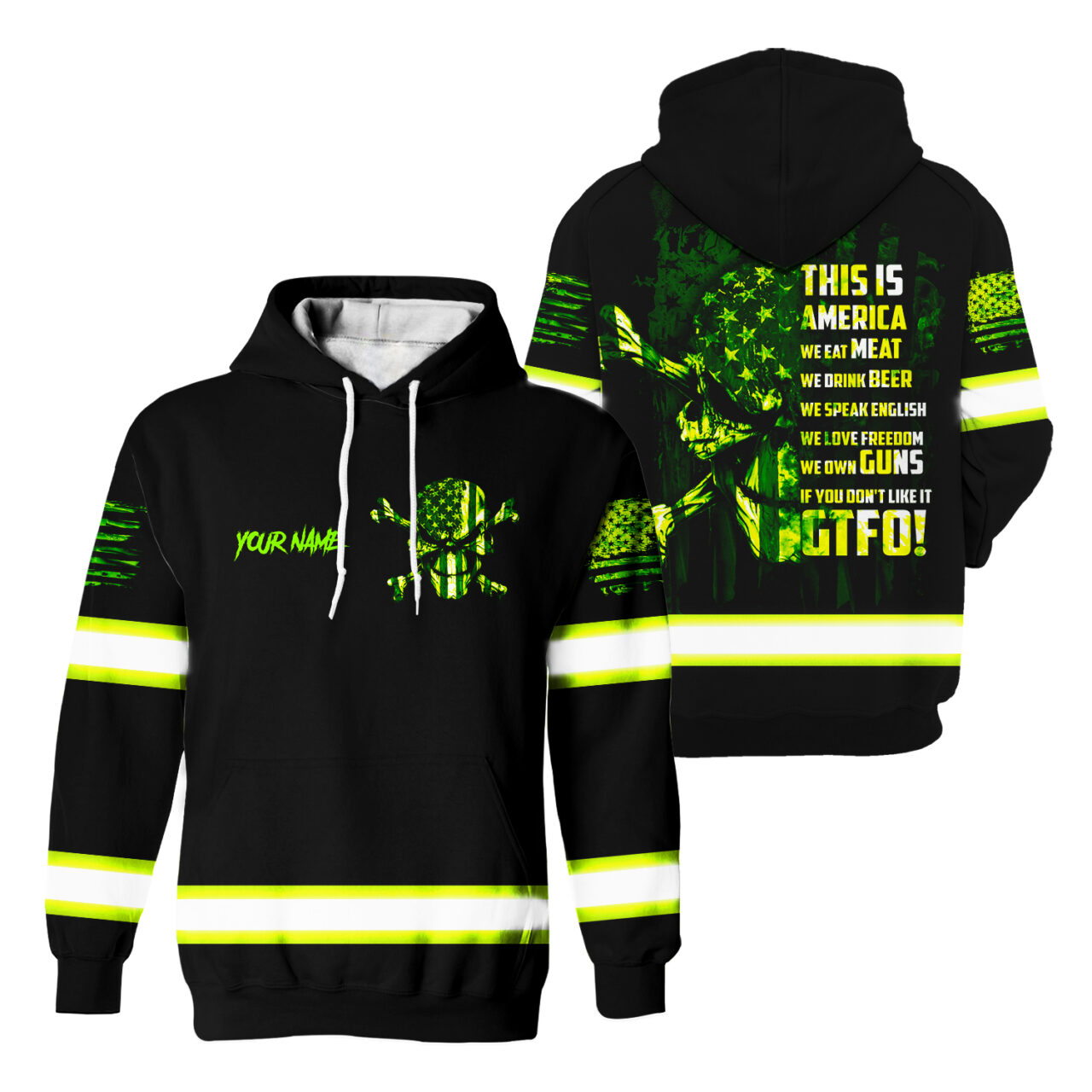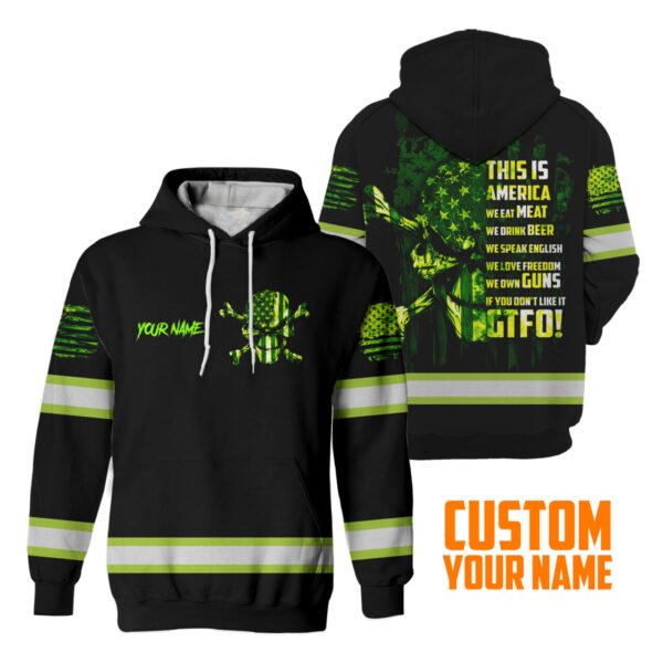 Hi Vis Reflective Custom Name US Flag Hoodie Safety Workwear