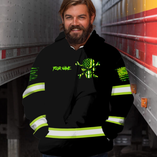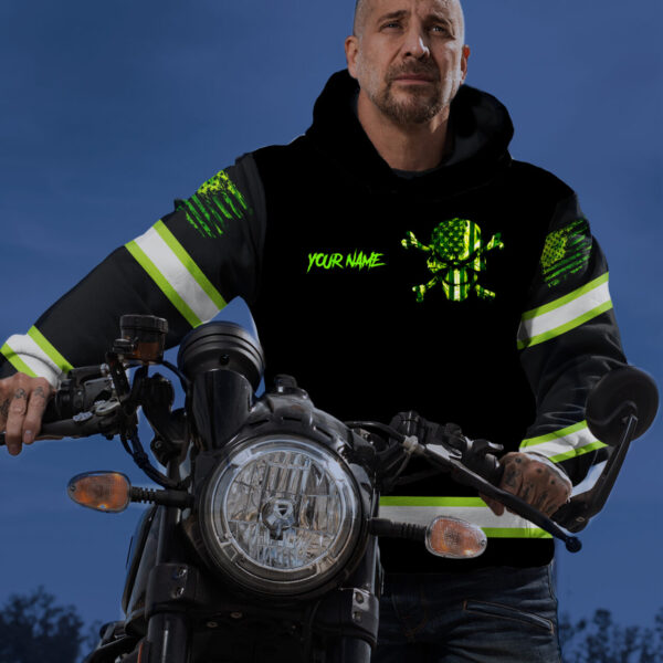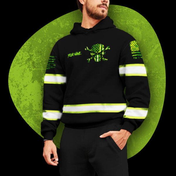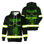 Custom Green Skull Hi Vis Hoodie – Reflective Safety Workwear
