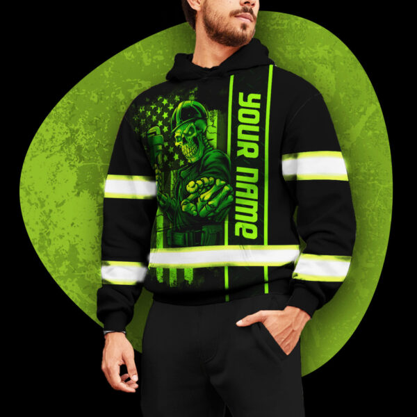Hi Vis Reflective Custom Name US Flag Hoodie Safety Workwear