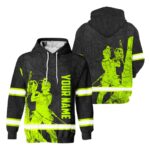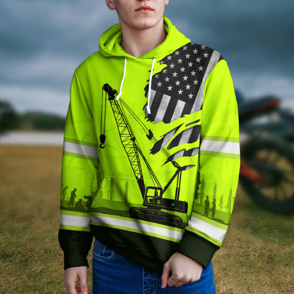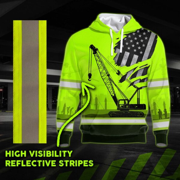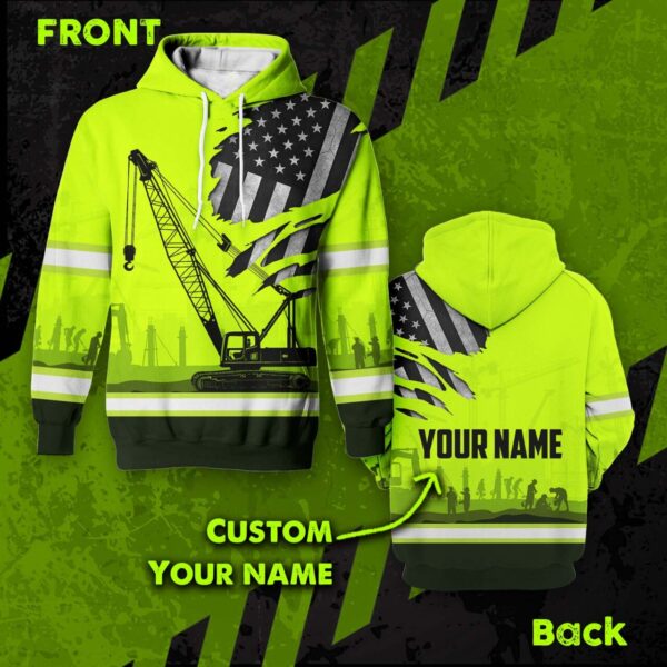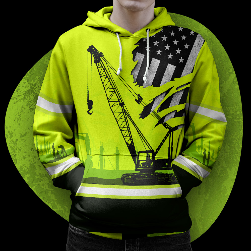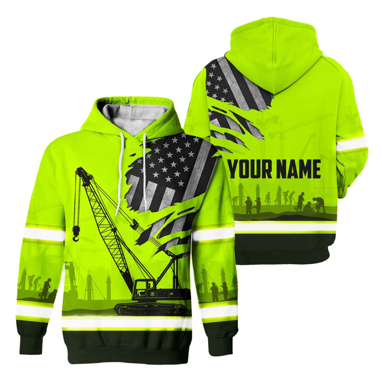 Hi Vis Hoodie Reflective Tapes Job Green Neon Crane Operator Custom Name Safety Workwear For Operator, Workers, Runners, Cyclists, Patriotic Description