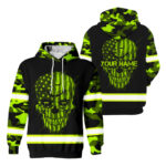 Safety Hoodies For Men Skull US Flag Camo Neon Custom Name Safety Workwear For Runners, Cyclists, Trucker, Operator, Patriotic