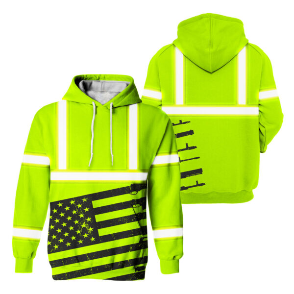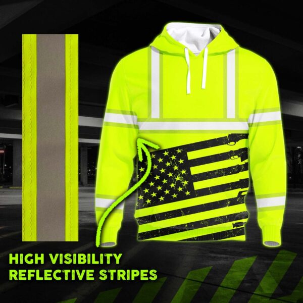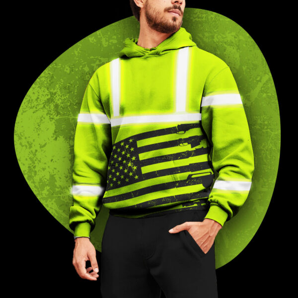 Green Hoodies Mens Tapes Green Gun USA Flag Safety Workwear For Runners, Cyclists, Patriotic