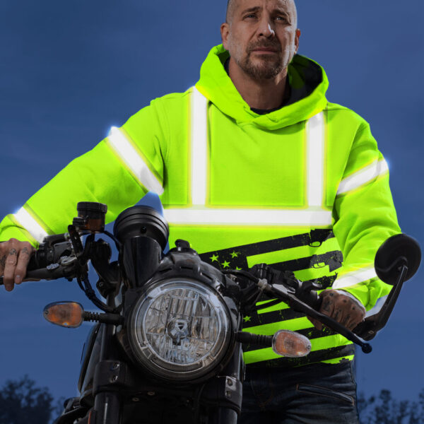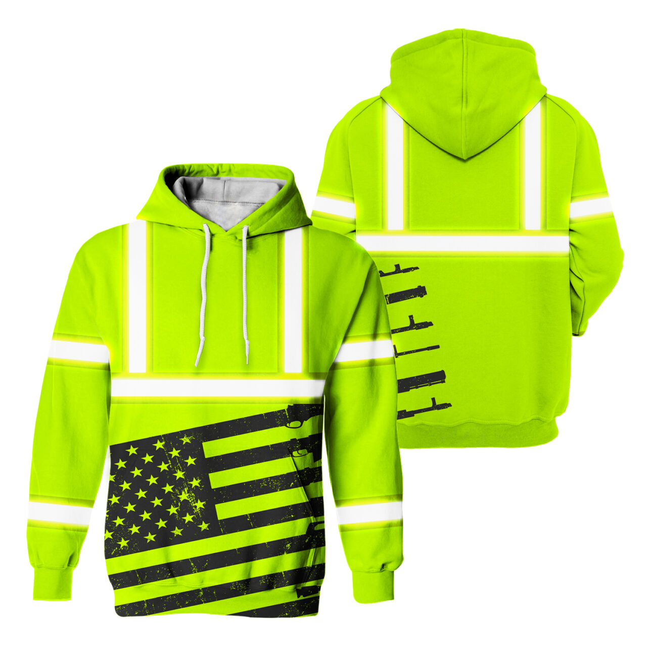 Hi Vis Hoodie Reflective US Flag Black Green Custom Name Safety Workwear