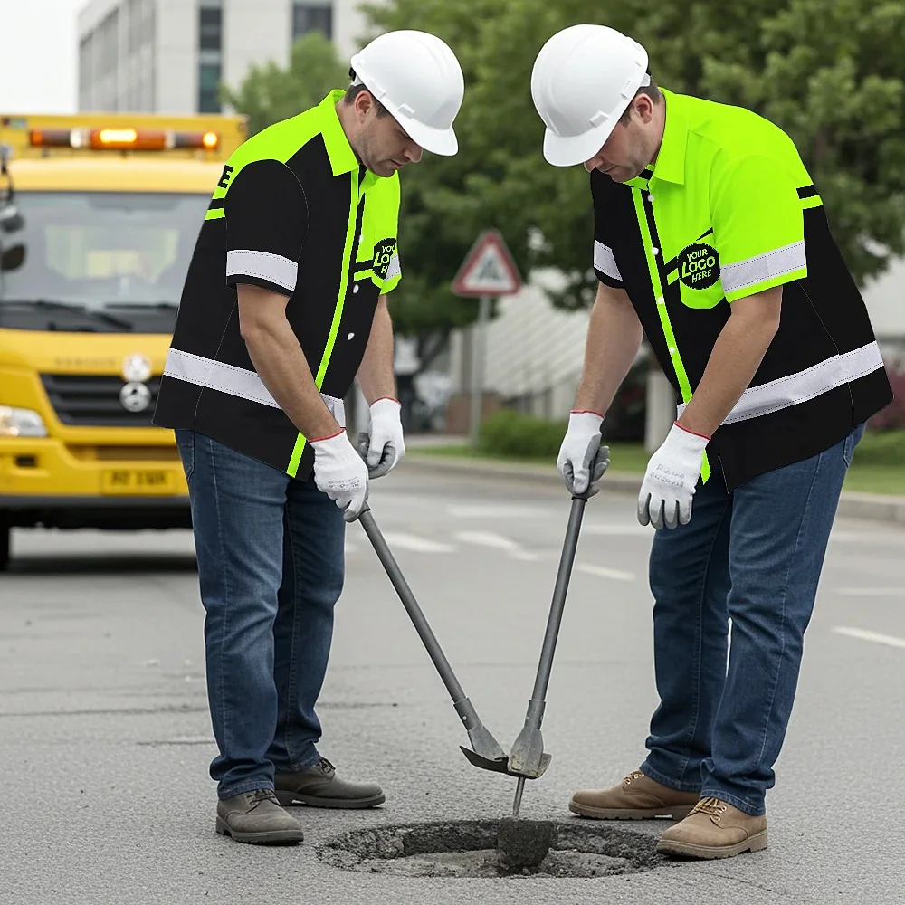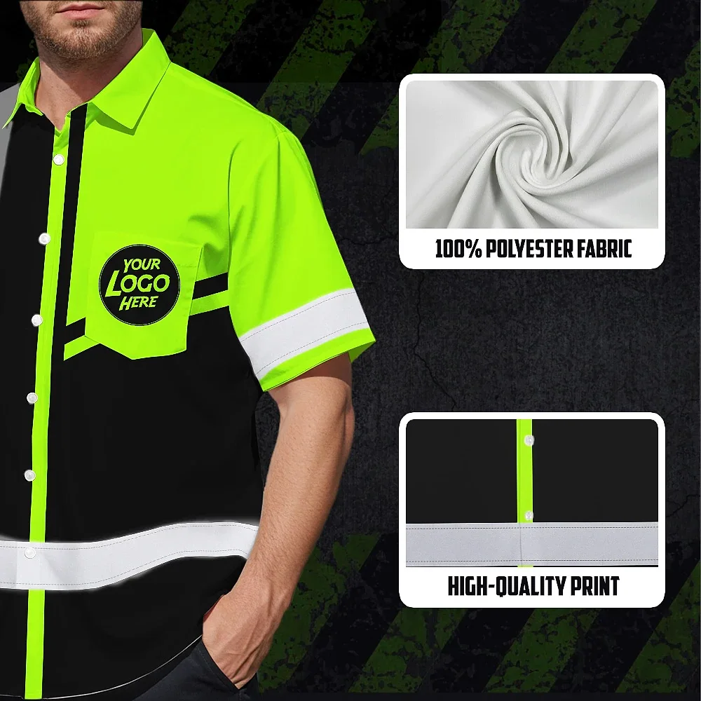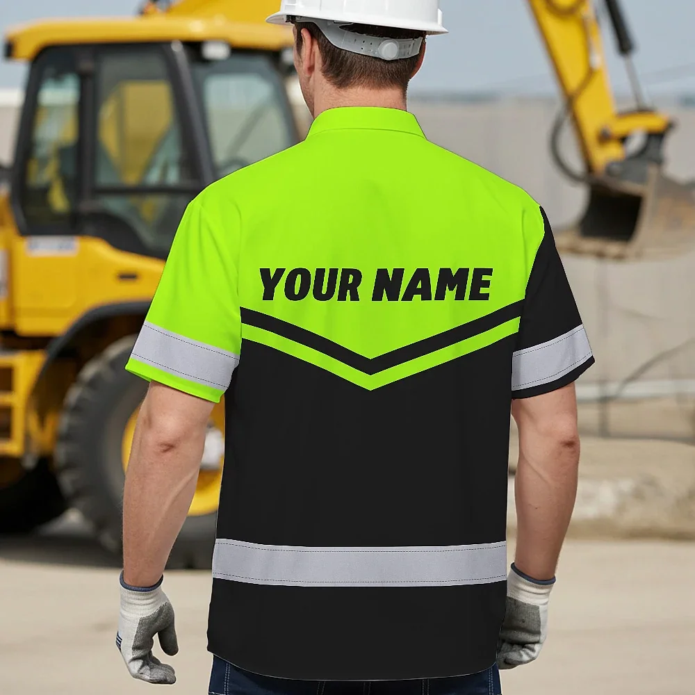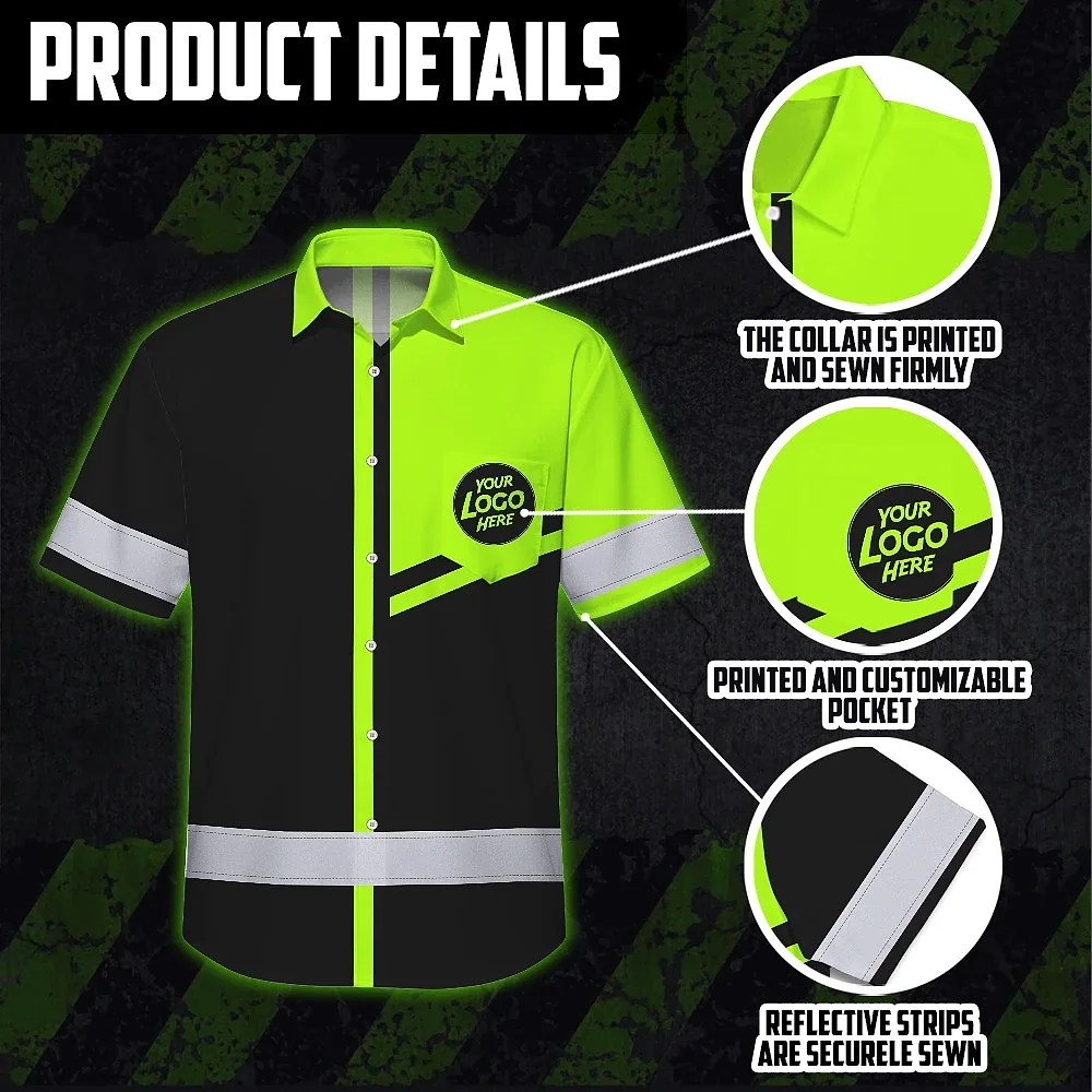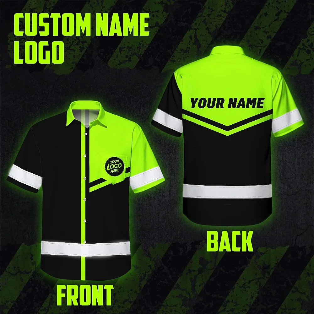 Hi Vis Hawaiian Shirt Company Uniforms Reflective Black Green Neon Custom Name And Logo