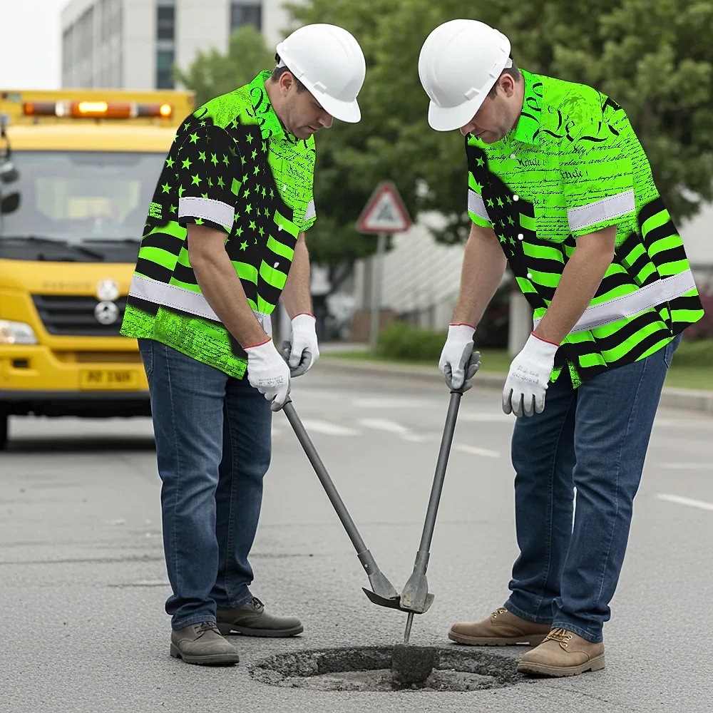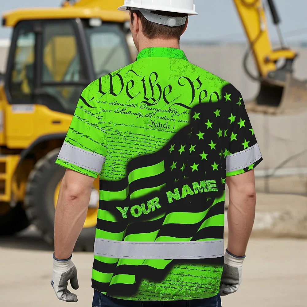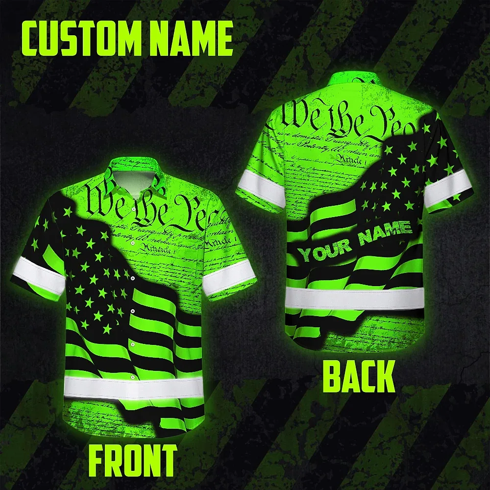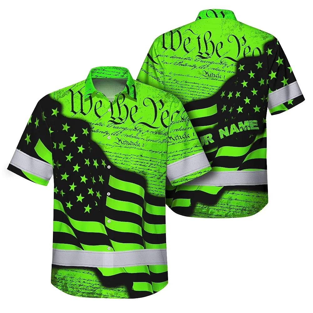 Hi Vis Hawaiian Shirt Reflective America Flag Orange Neon Patriotic Custom Name