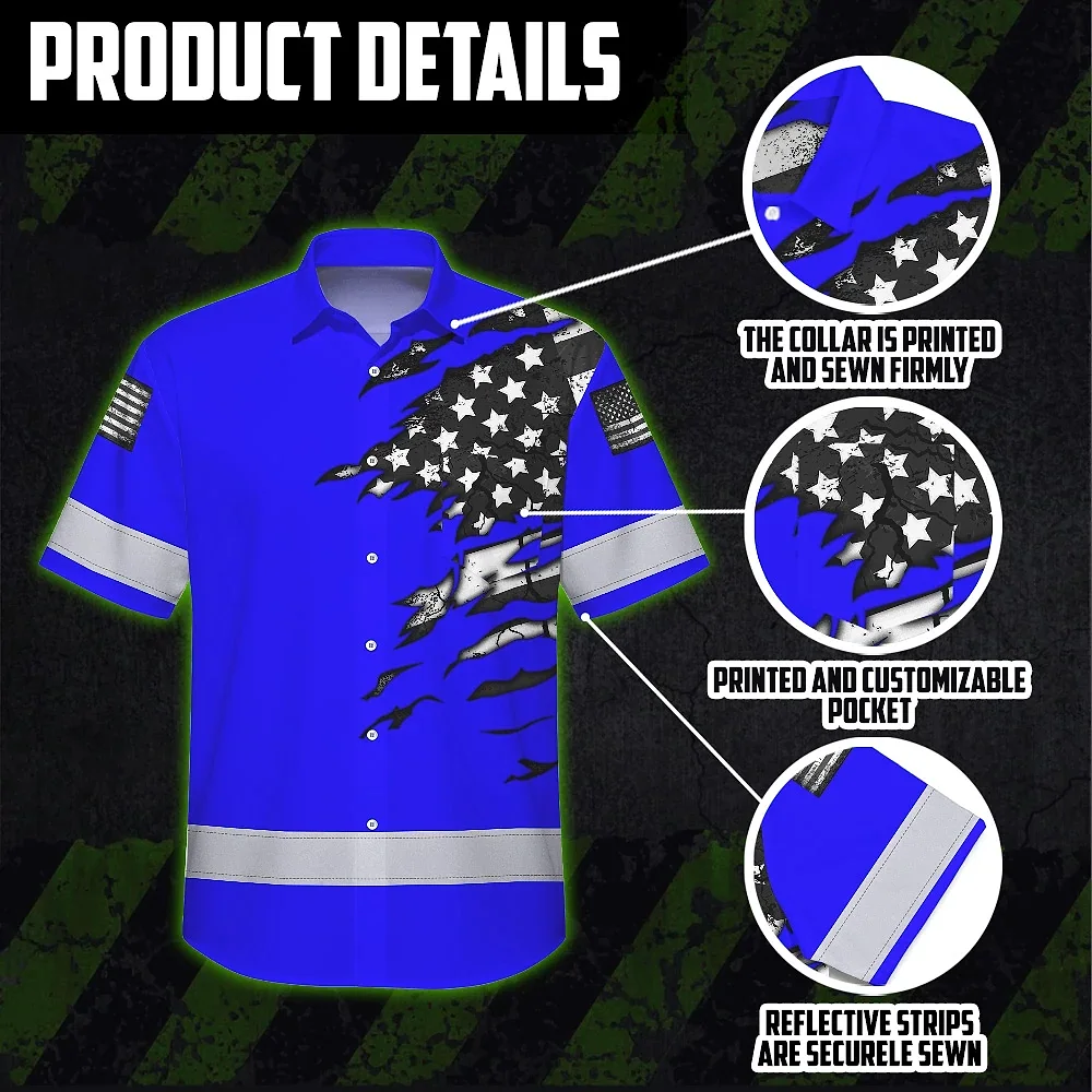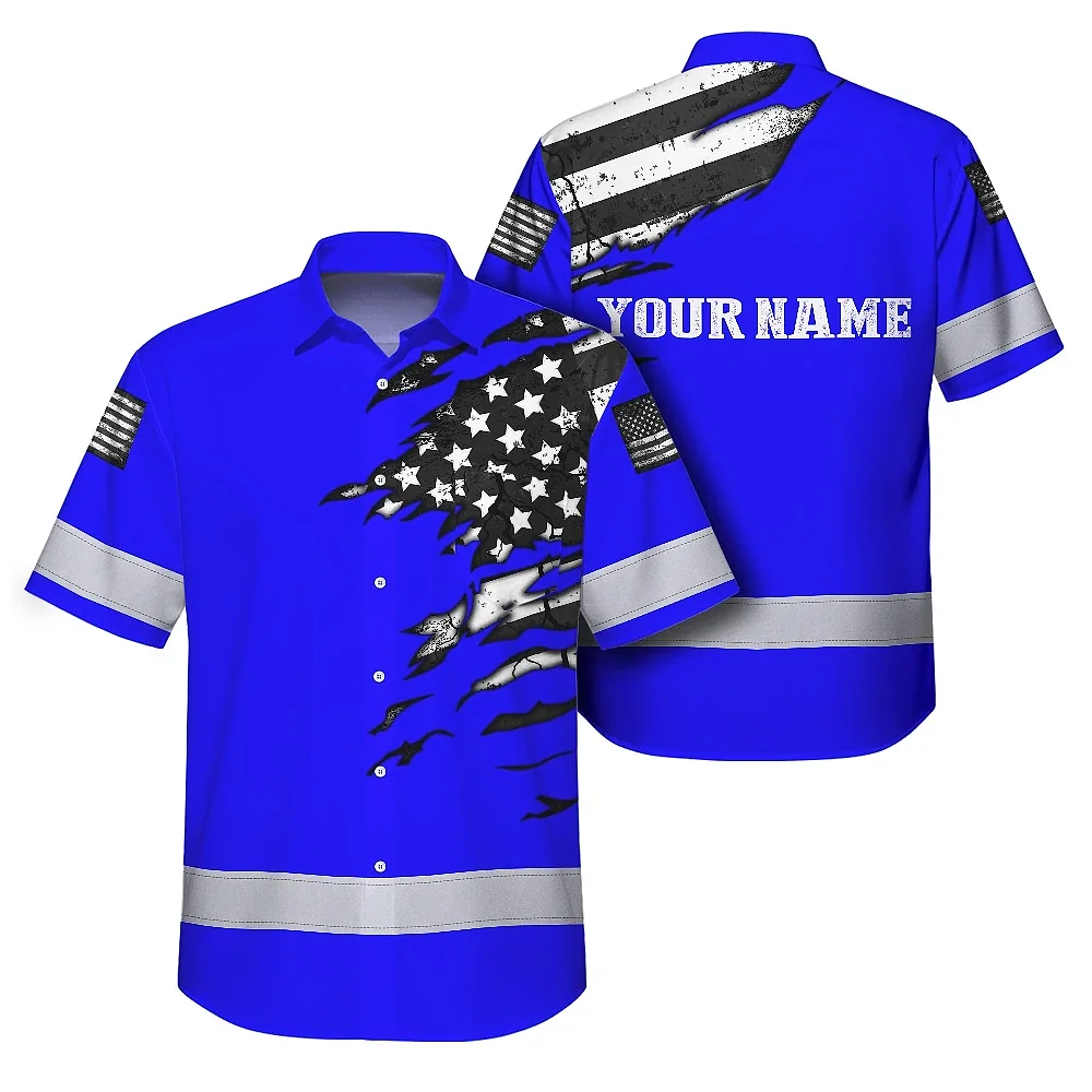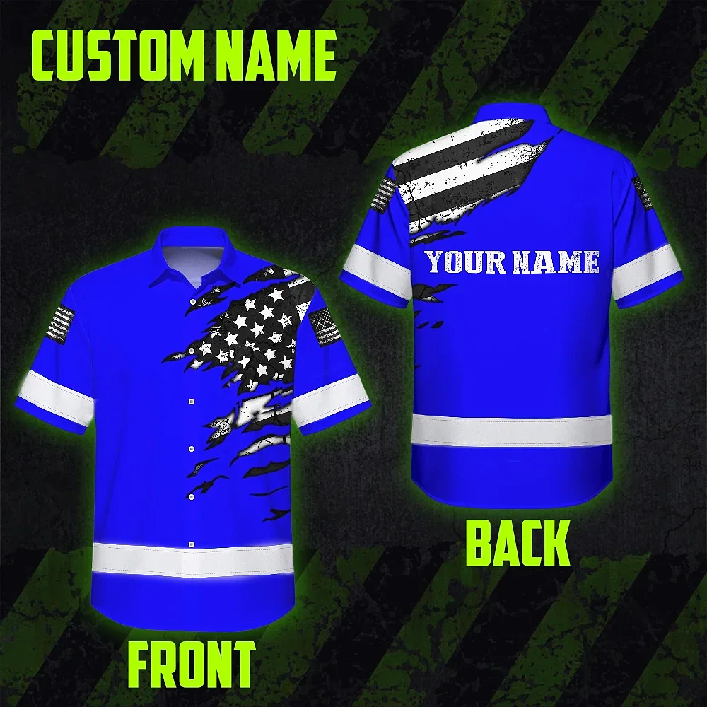 Hi Vis Hawaiian Shirt Reflective Scratch Blue Neon US Flag Custom Name