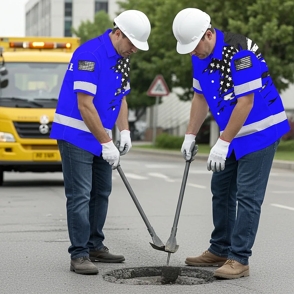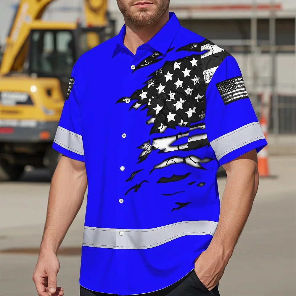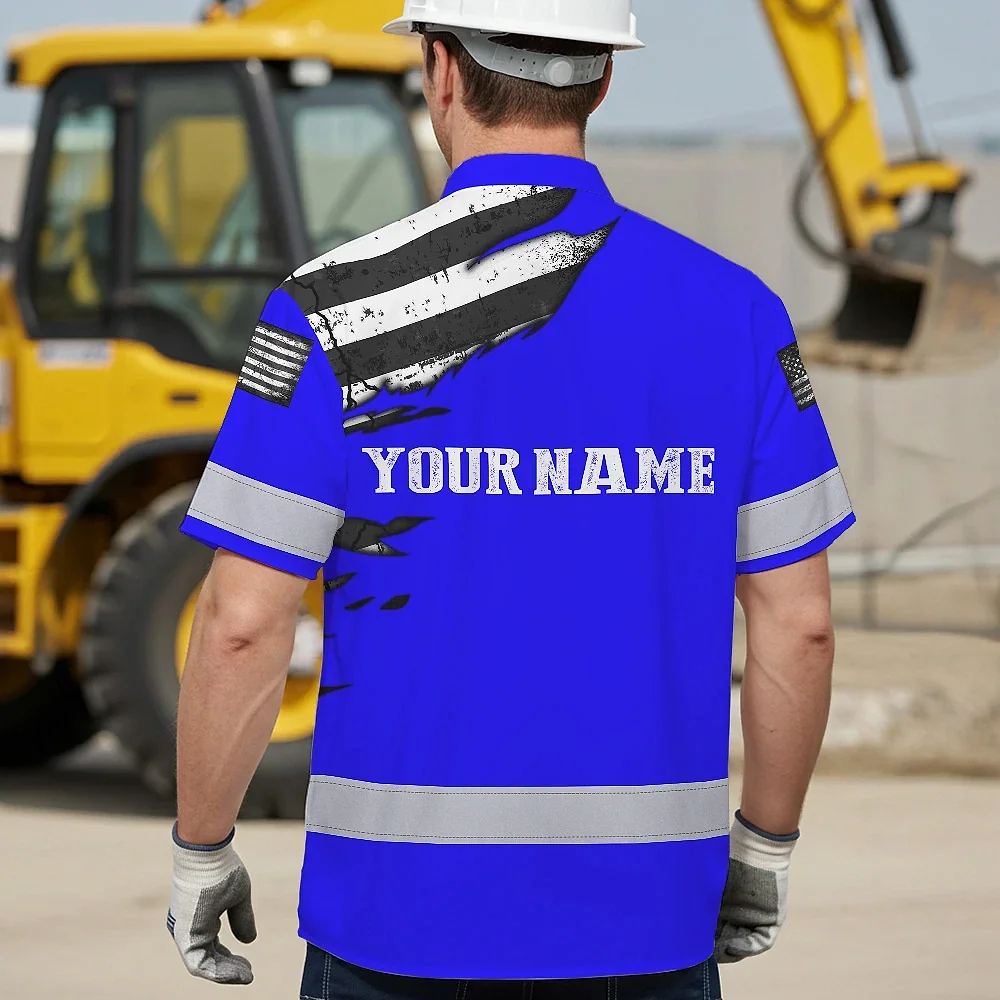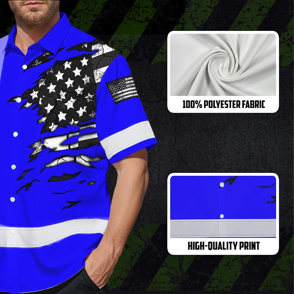 Hi Vis Hawaiian Shirt Reflective Scratch Blue Neon US Flag Custom Name