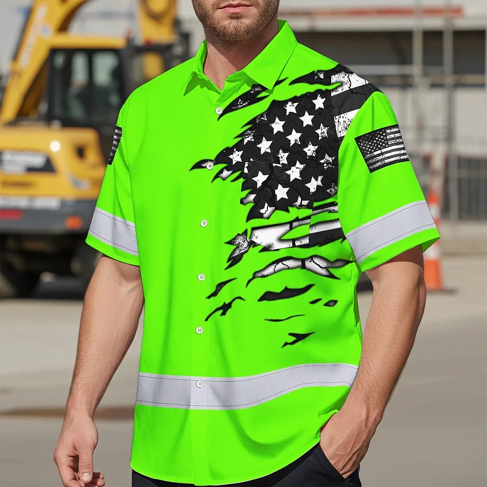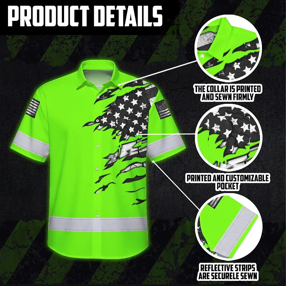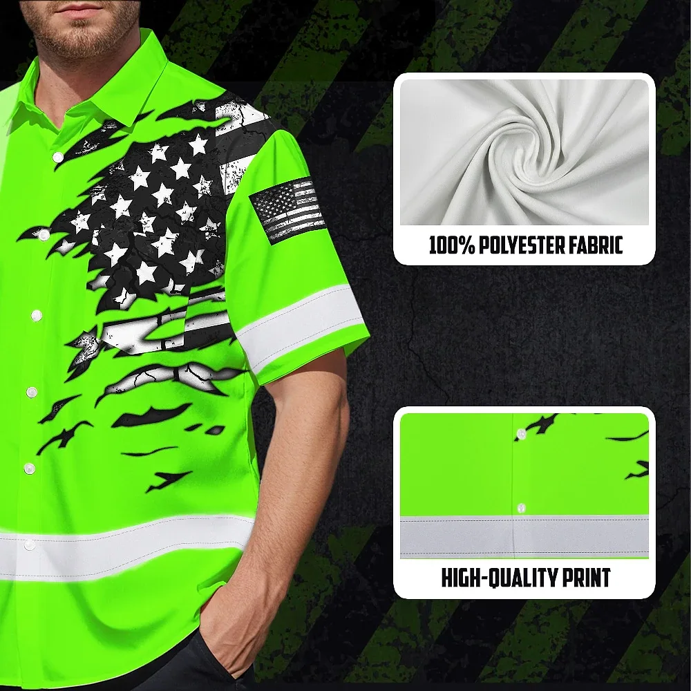 Hi Vis Hawaiian Shirt Reflective Scratch Green Neon US Flag