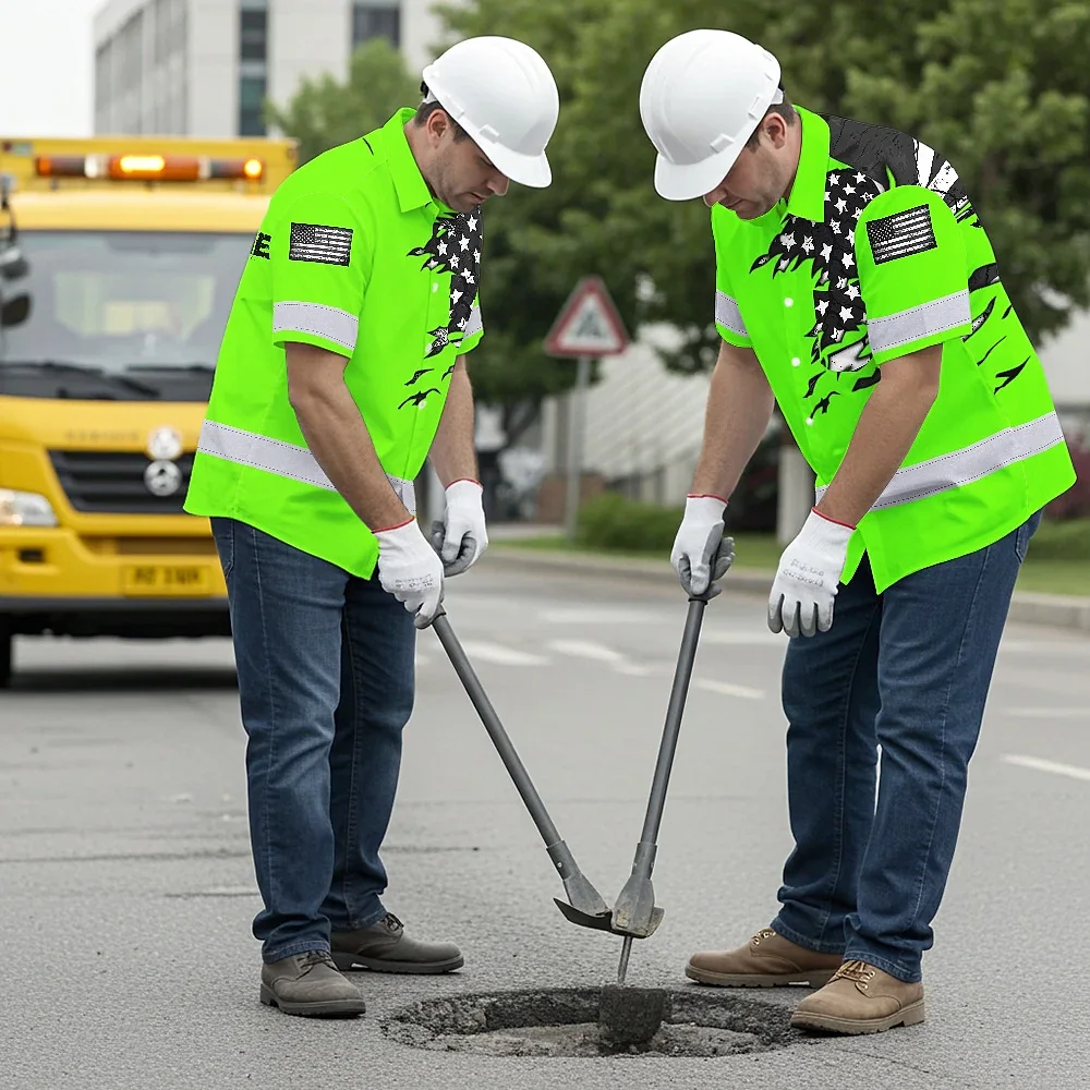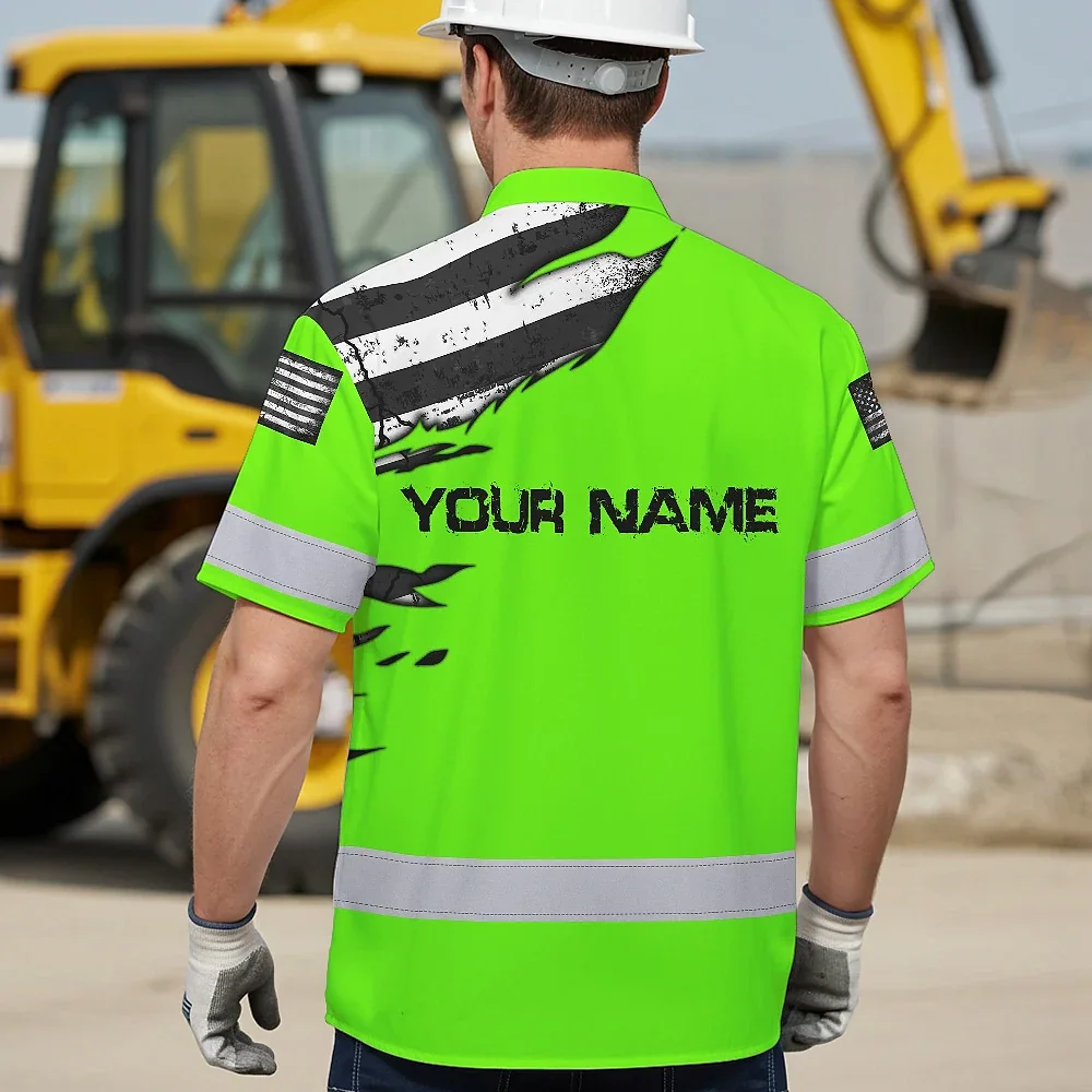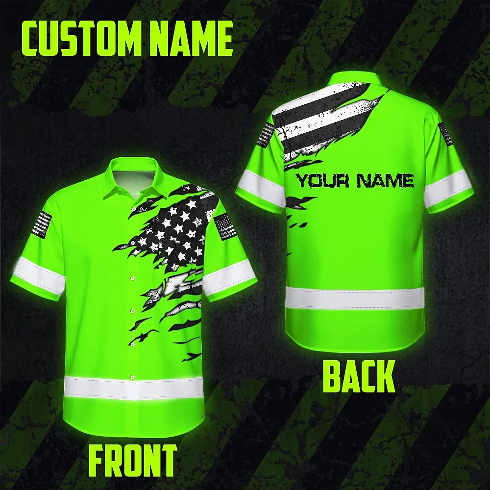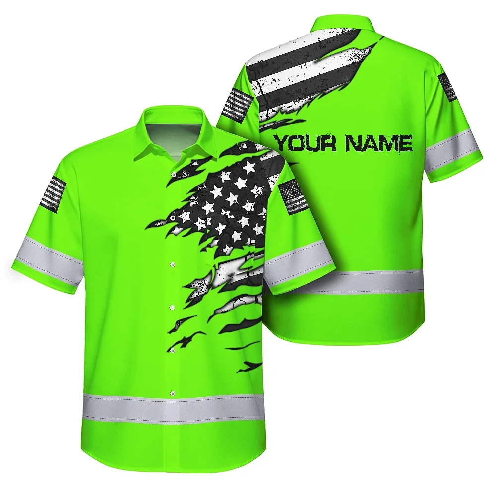 Hi Vis Hawaiian Shirt Reflective Scratch Green Neon US Flag