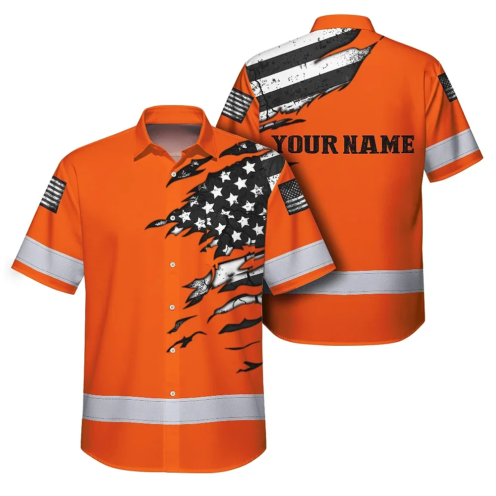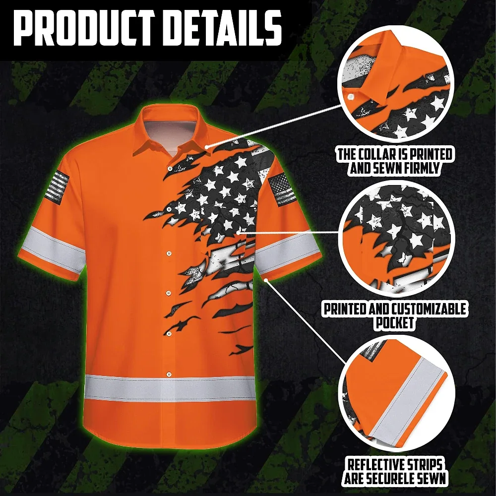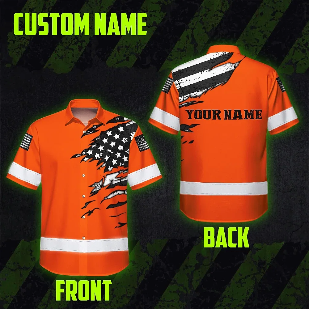Hi Vis Hawaiian Shirt Reflective Scratch Orange Neon US Flag Custom Name Safety