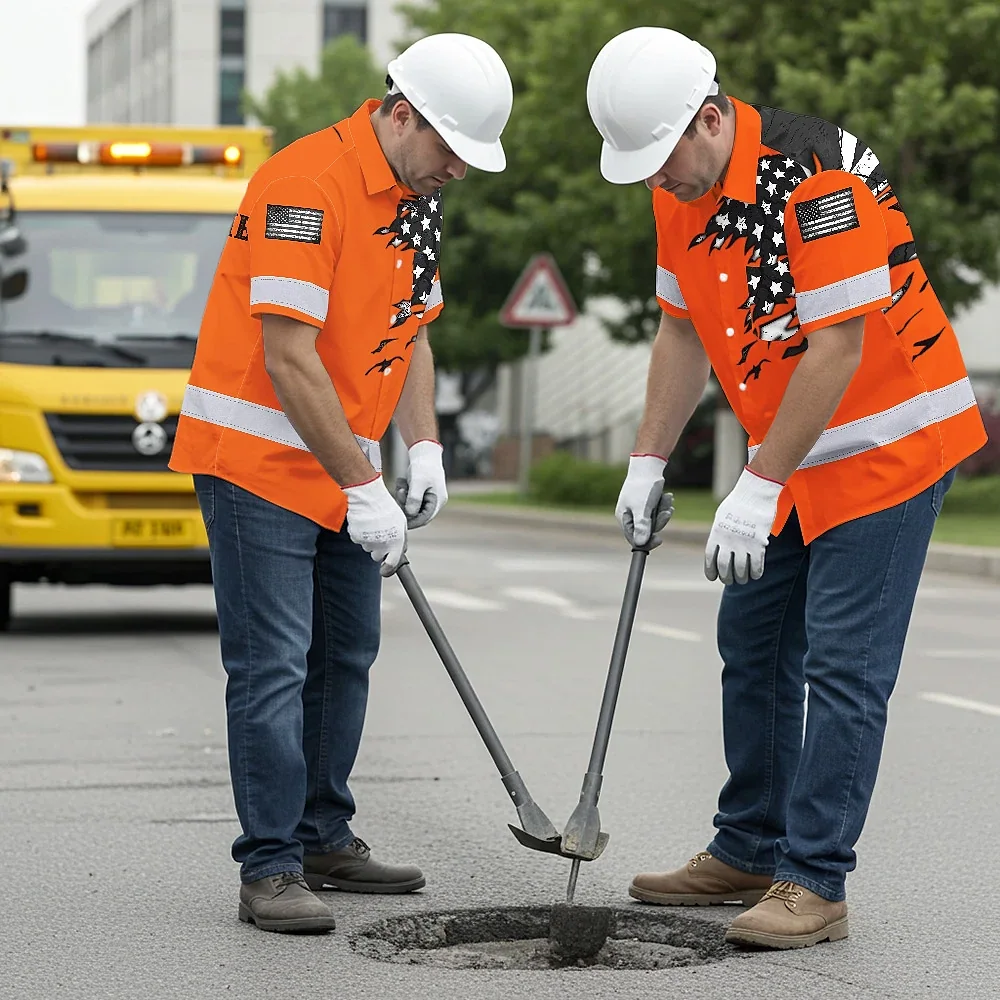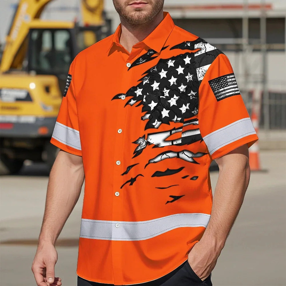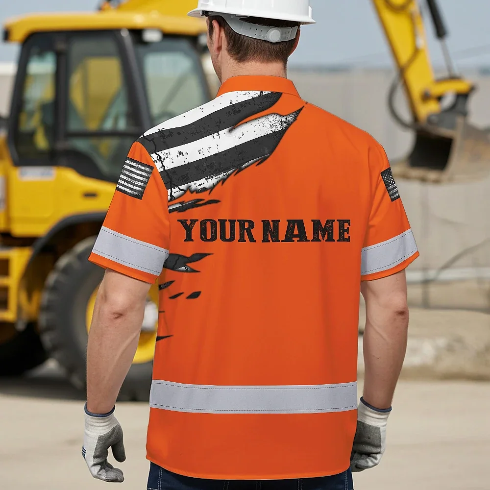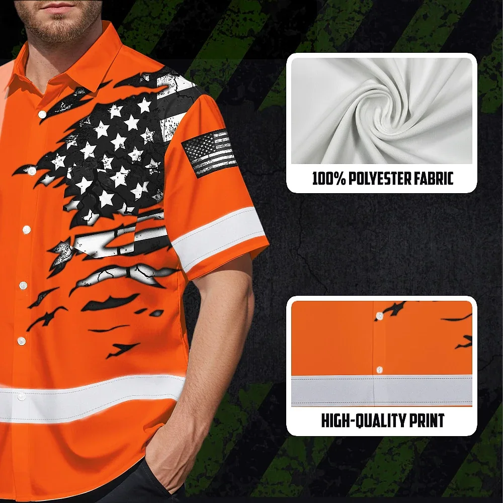 Hi Vis Hawaiian Shirt Reflective Scratch Orange Neon US Flag Custom Name Safety