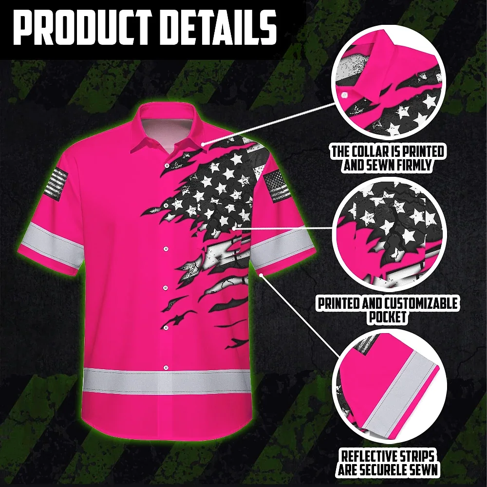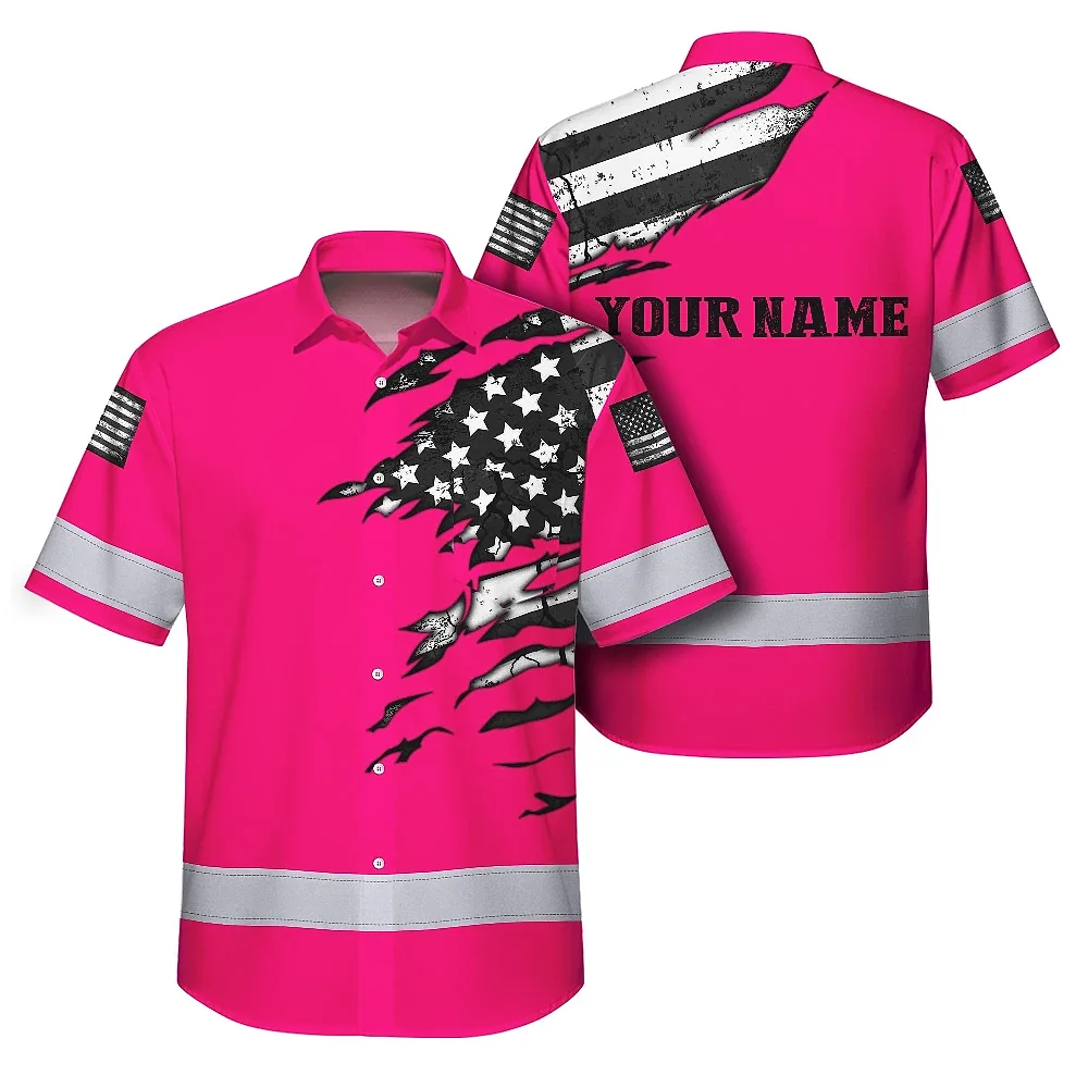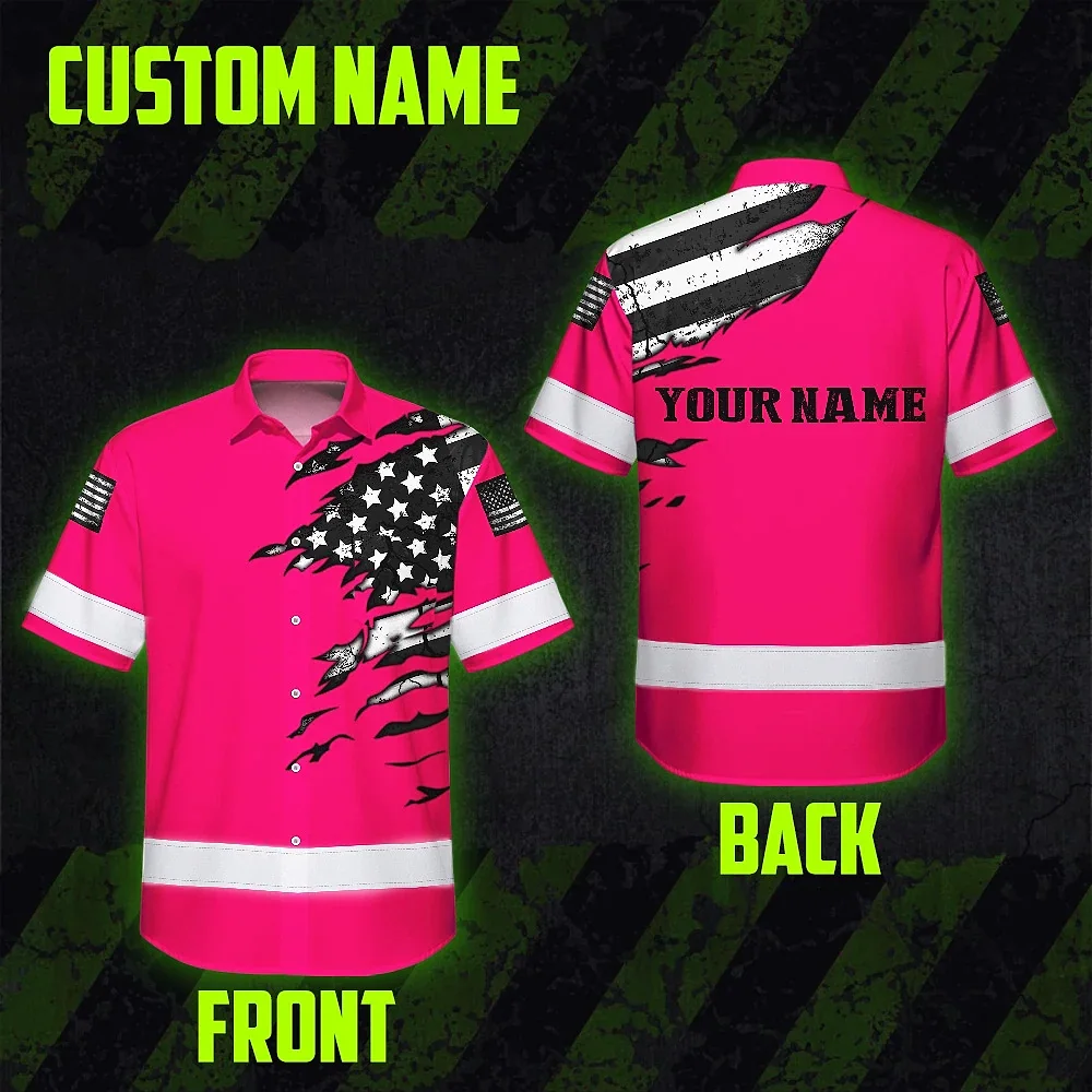 Hi Vis Hawaiian Shirt Reflective Scratch Pink Neon US Flag Custom Name