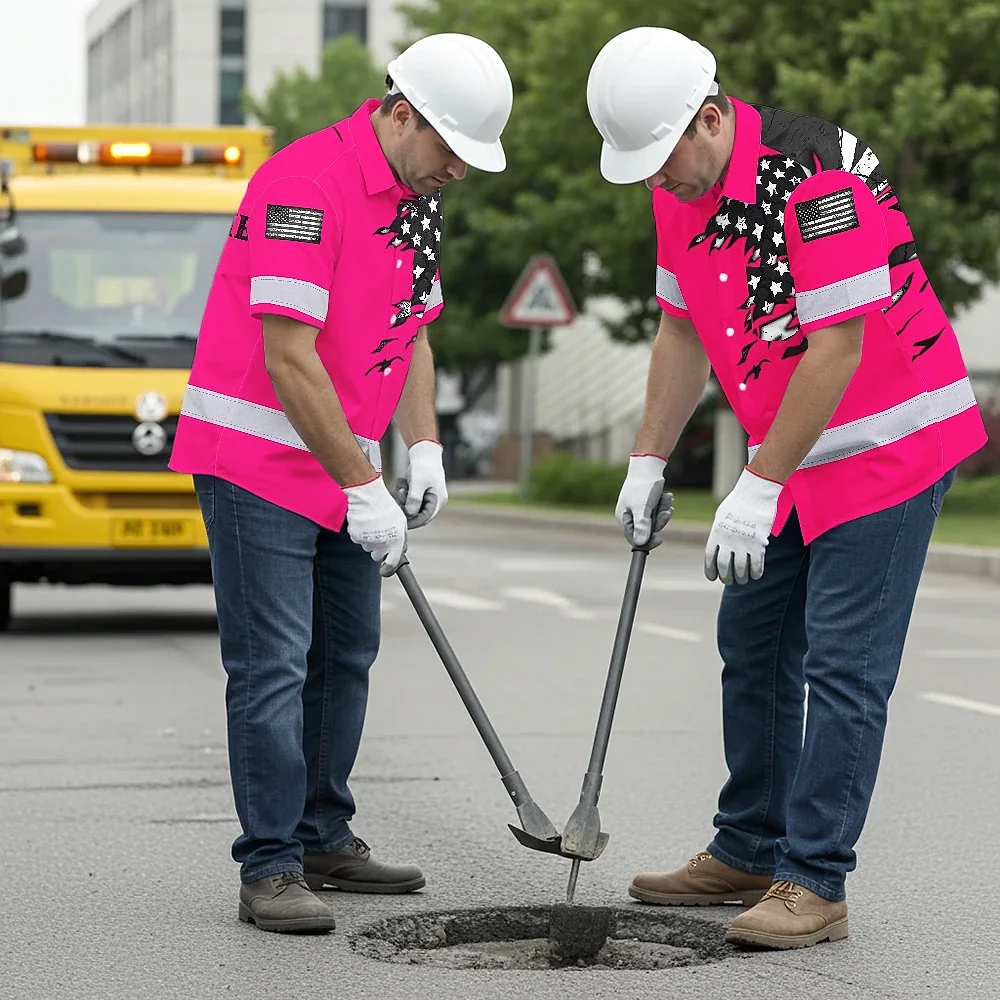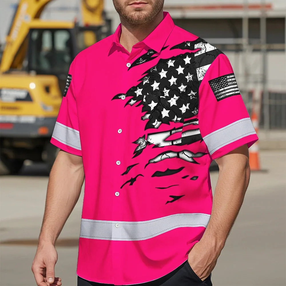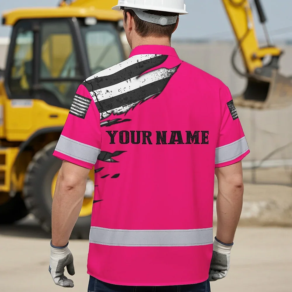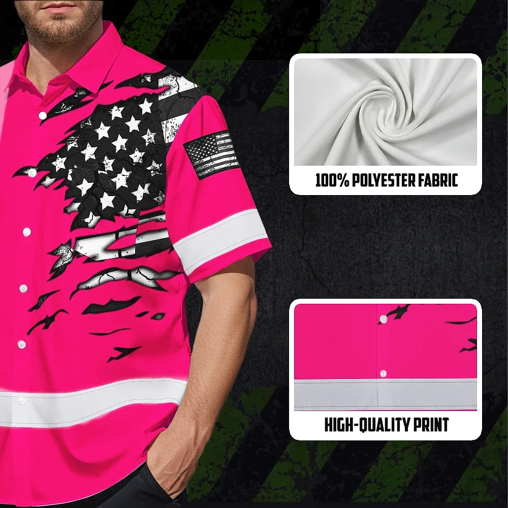 Hi Vis Hawaiian Shirt Reflective Scratch Pink Neon US Flag Custom Name