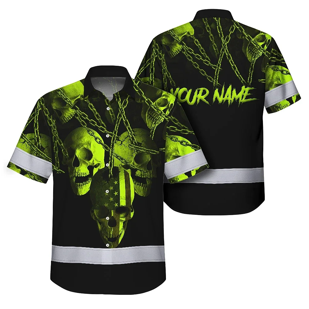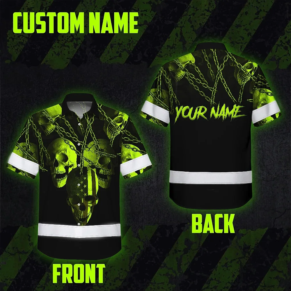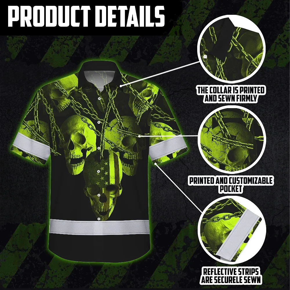 Hi Vis Hawaiian Shirt Reflective Skull With Chain Custom Name Safety Workwear