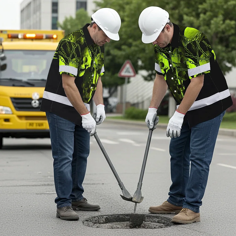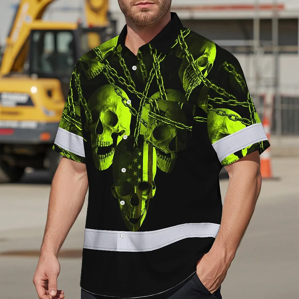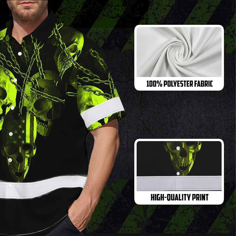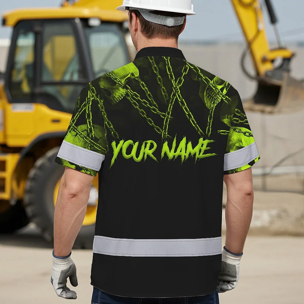 Hi Vis Hawaiian Shirt Reflective Skull With Chain Custom Name Safety Workwear
