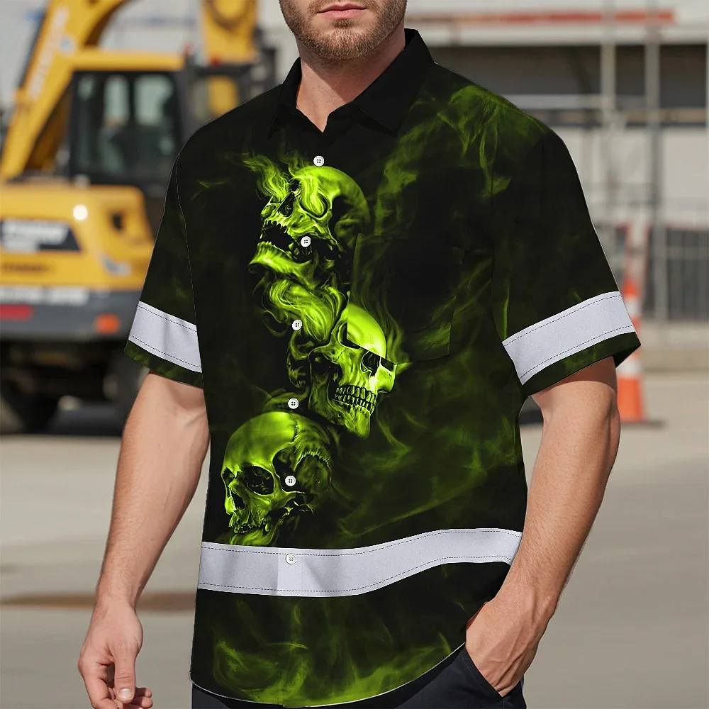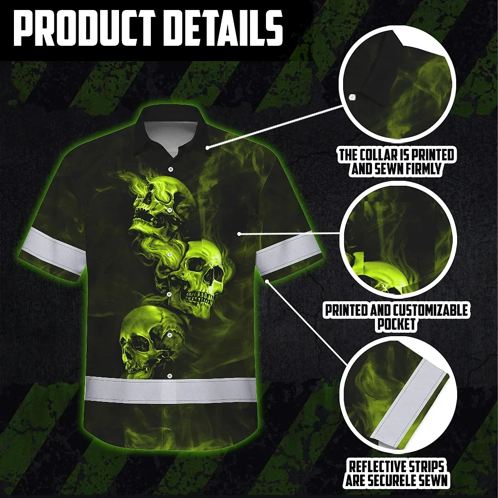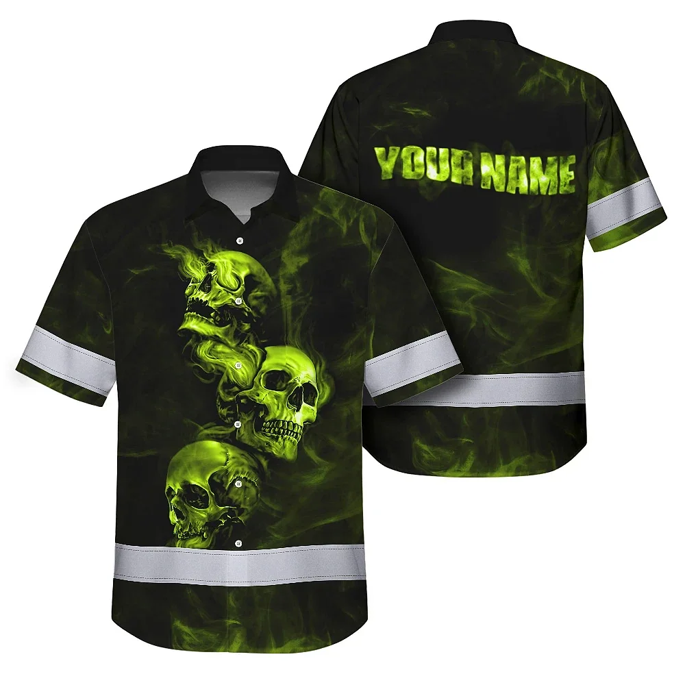 Hi Vis Hawaiian Shirt Reflective Skull With Smoke Custom Name Safety Workwear