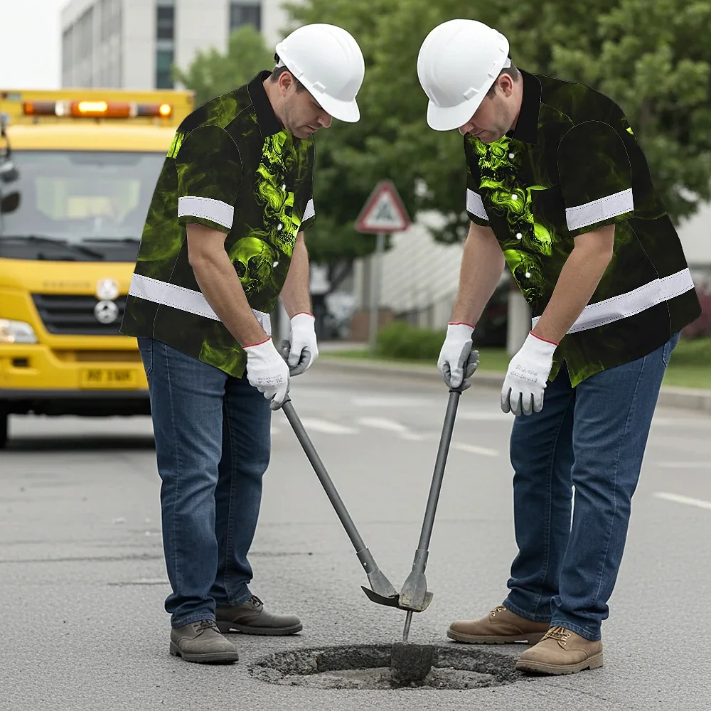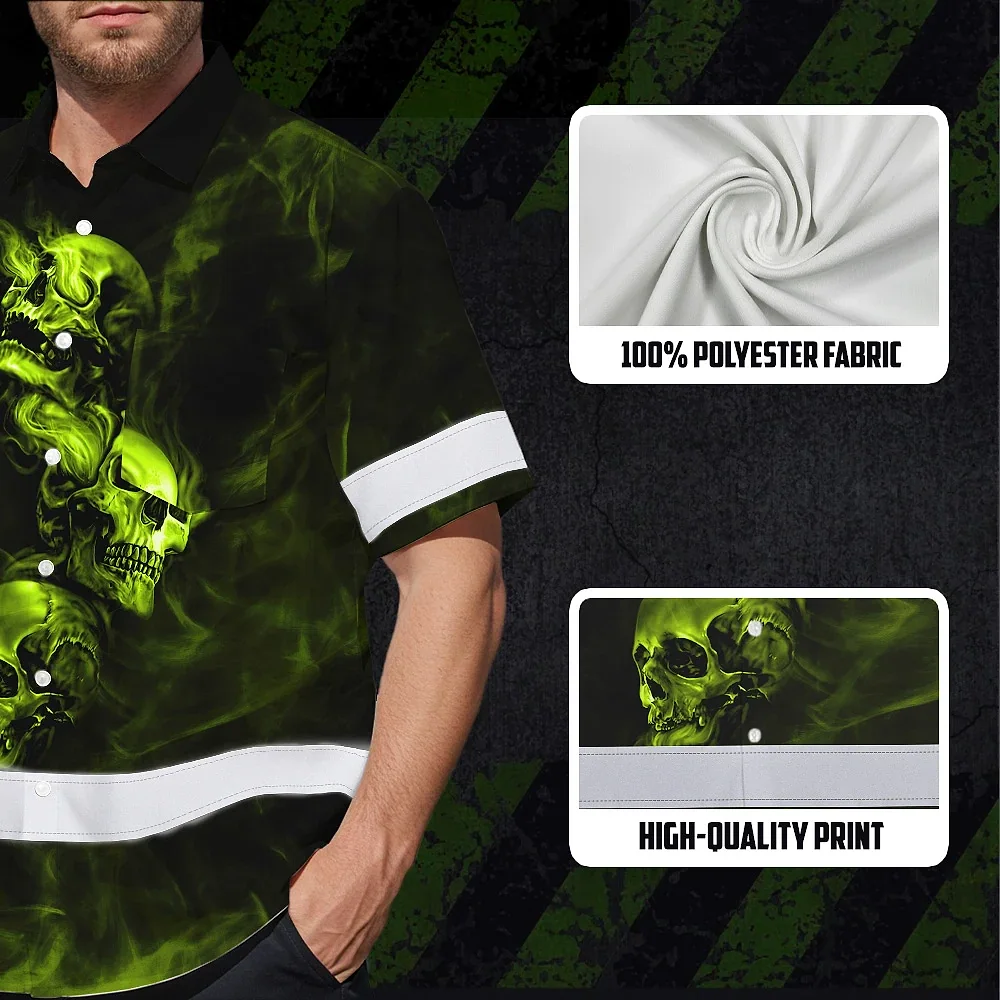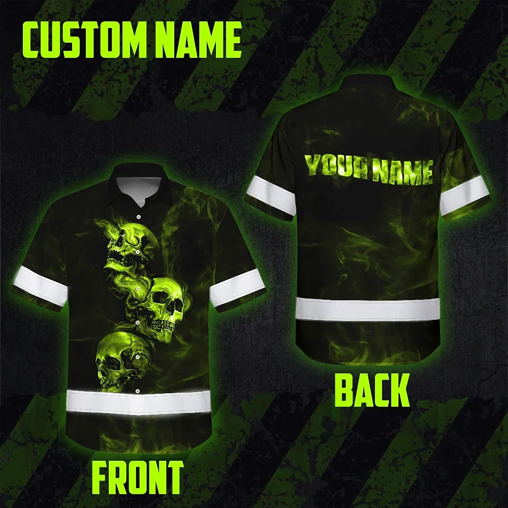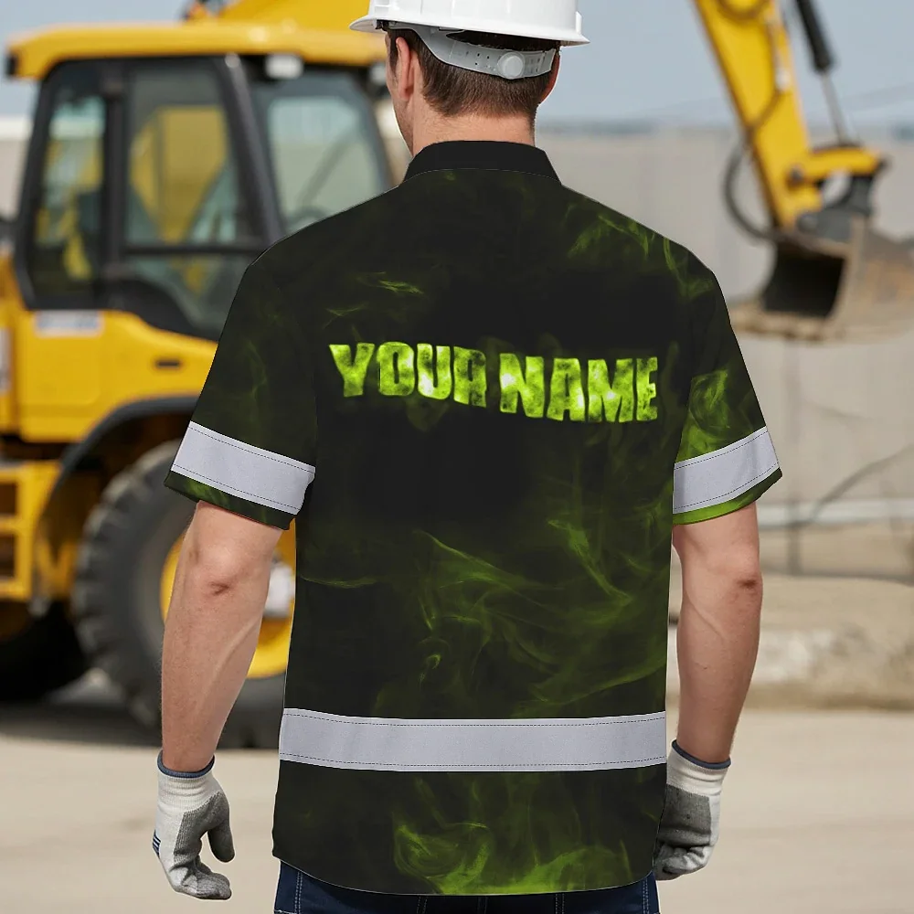 Hi Vis Hawaiian Shirt Reflective Skull With Smoke Custom Name Safety Workwear