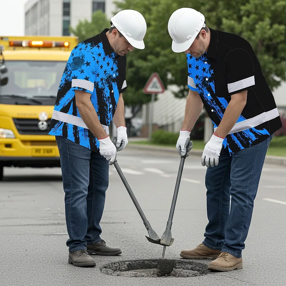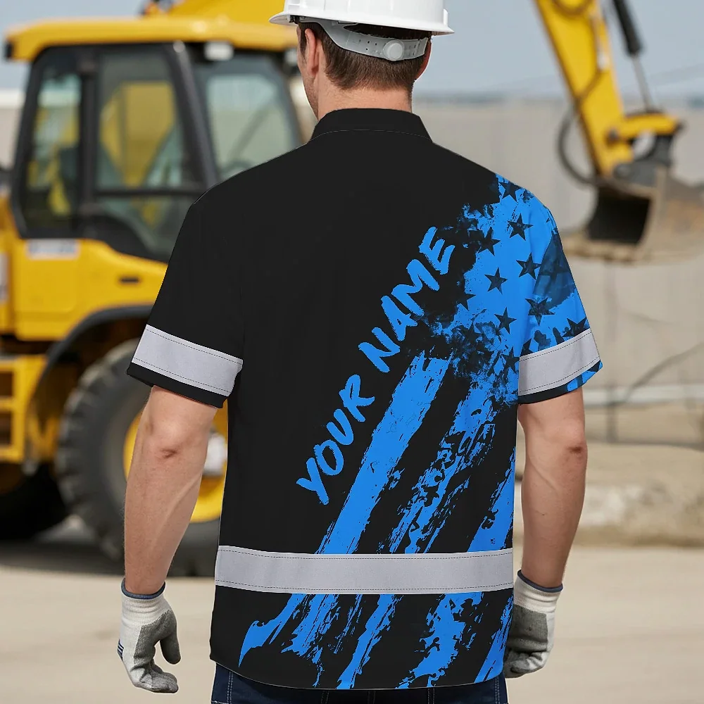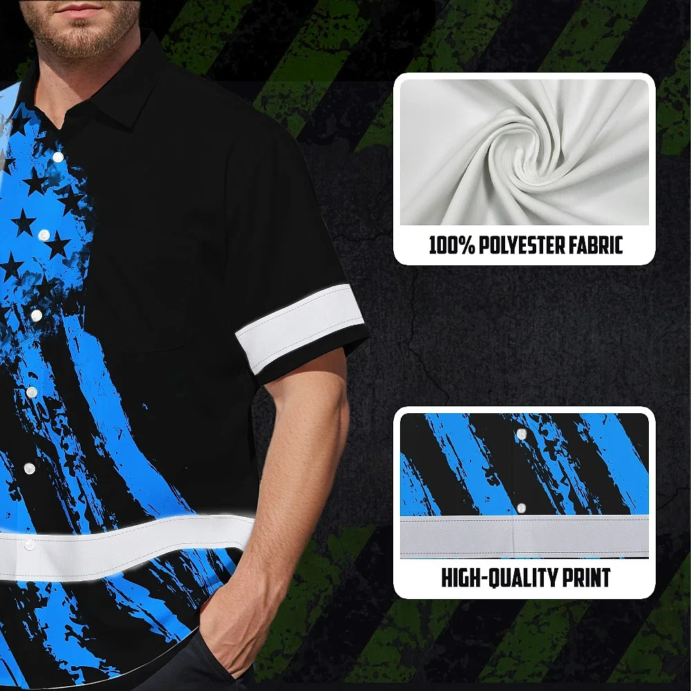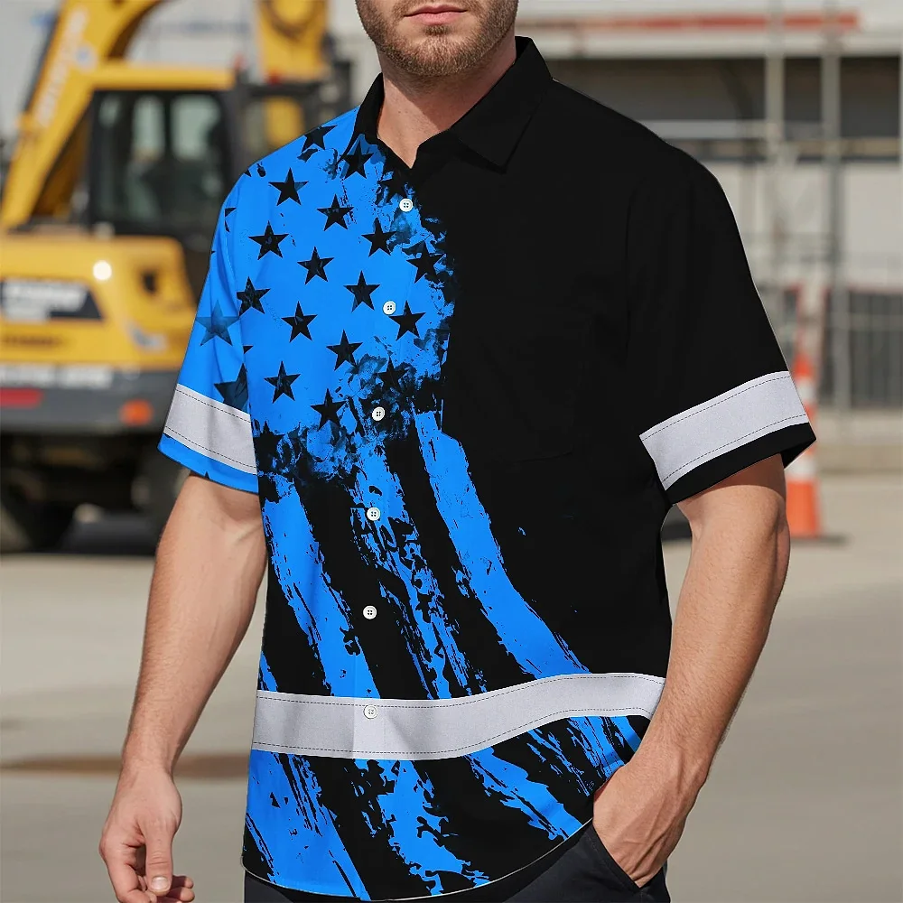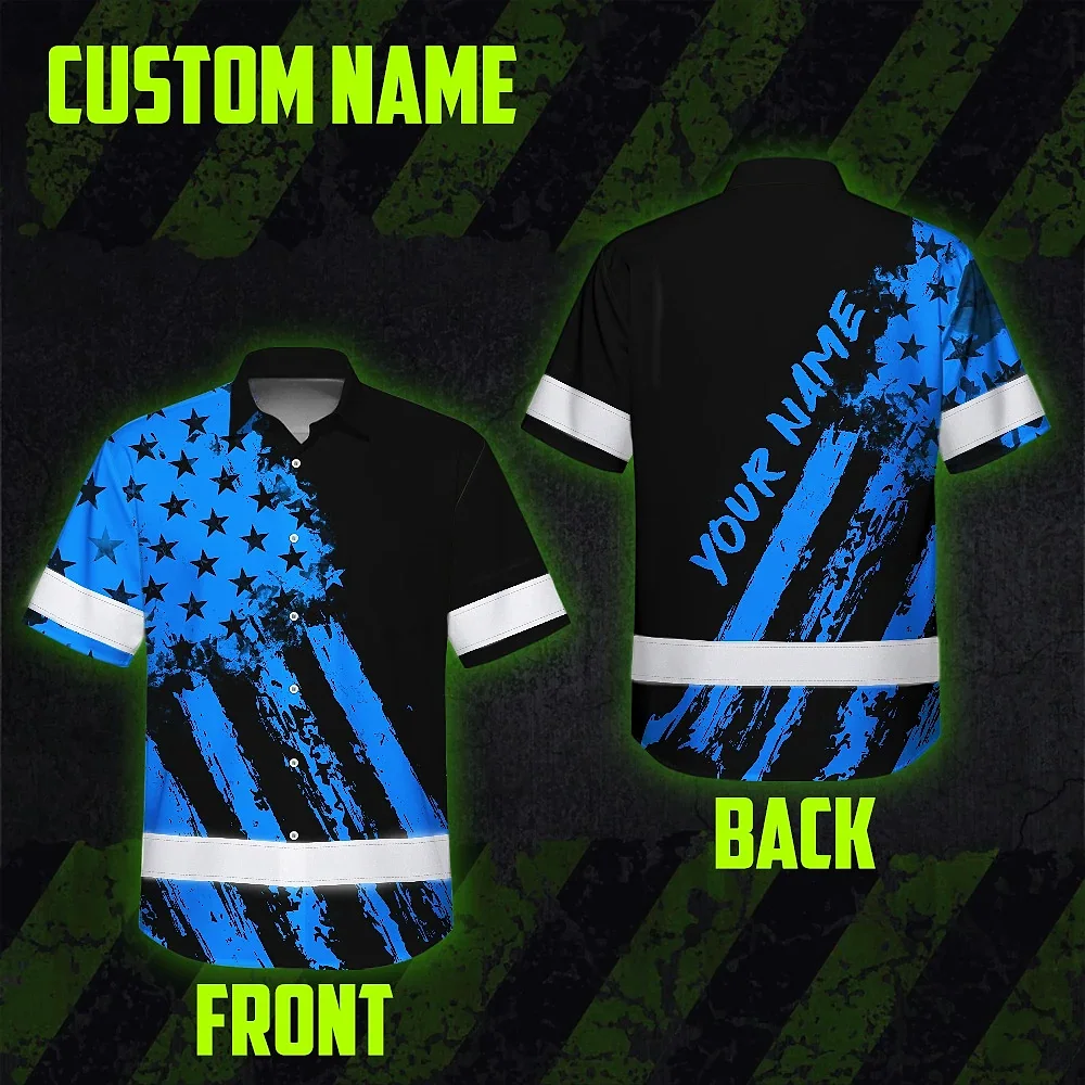 Hi Vis Hawaiian Shirt Reflective Tapes Blue Neon And Black US Flag