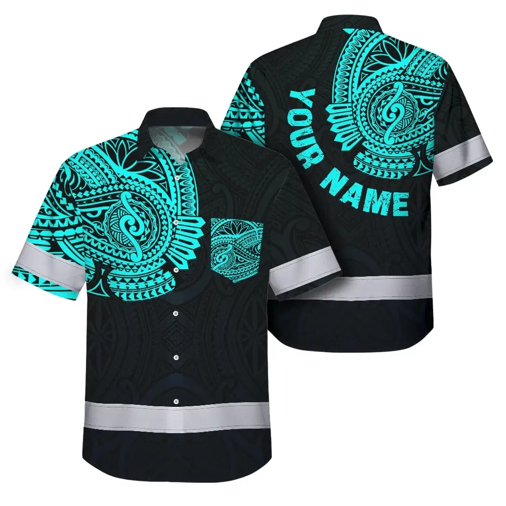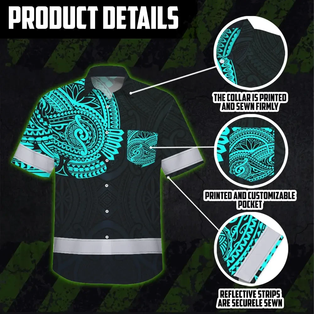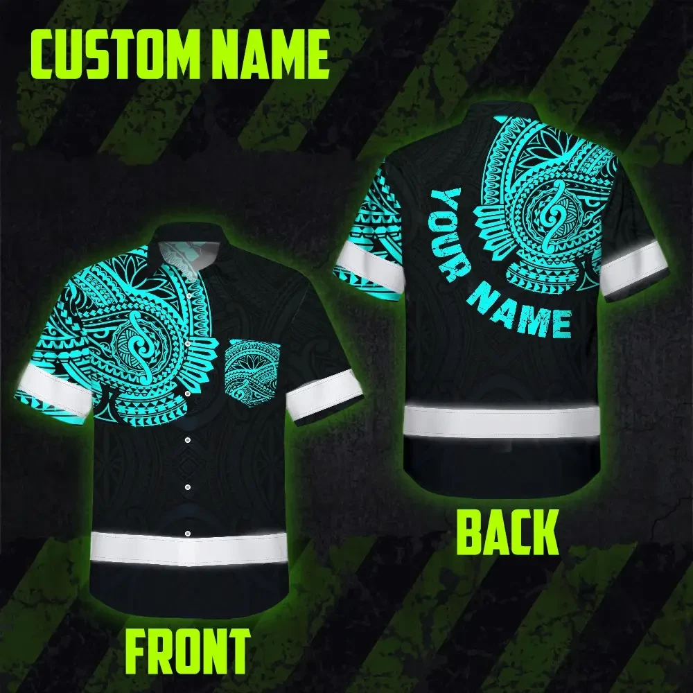 Hi Vis Hawaiian Shirt Reflective Tapes Blue Neon Hawaii 2 Custom Name