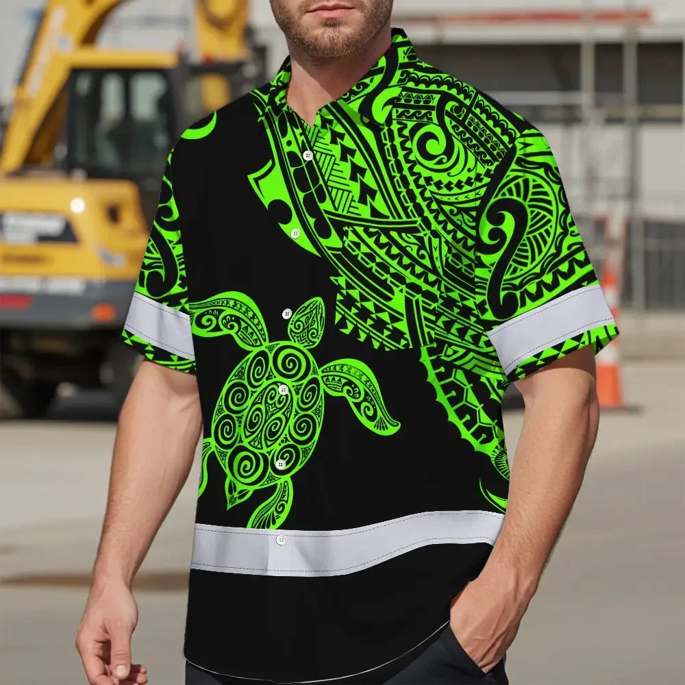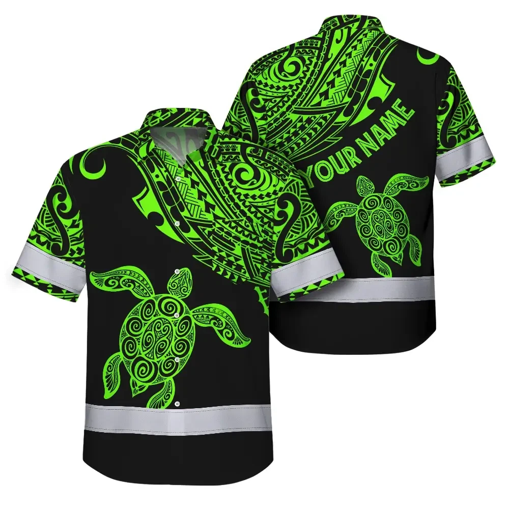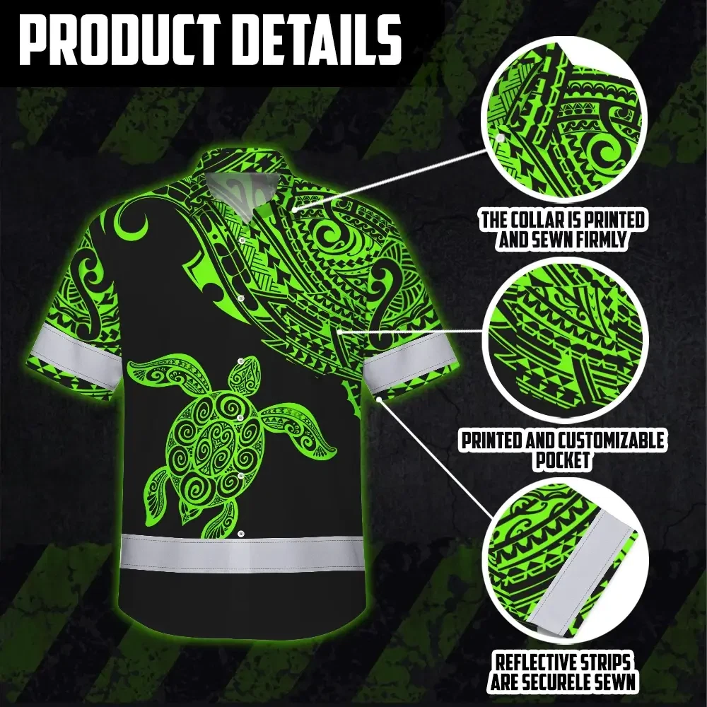 Hi Vis Hawaiian Shirt Reflective Tapes Green Neon Turtle Hawaii Custom Name