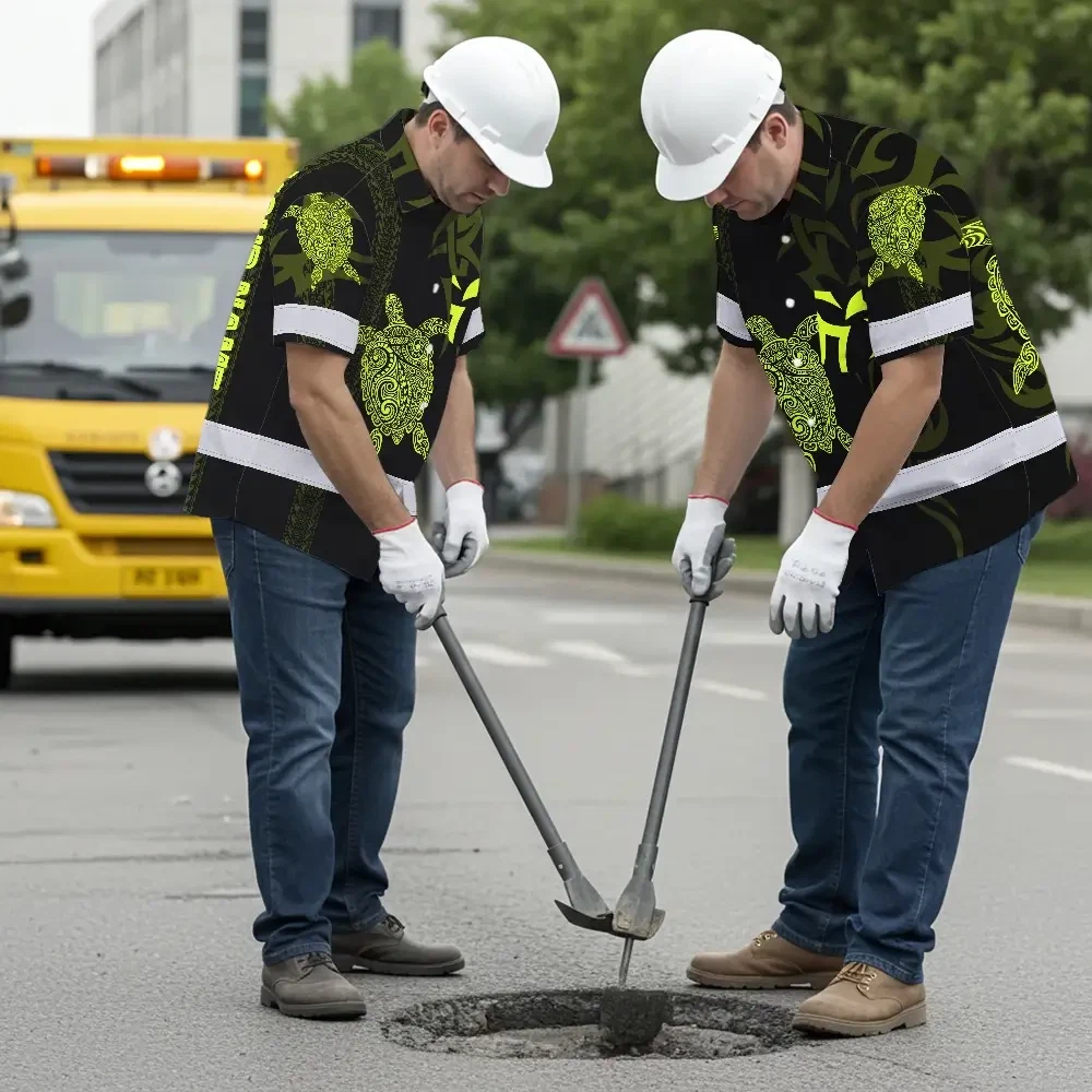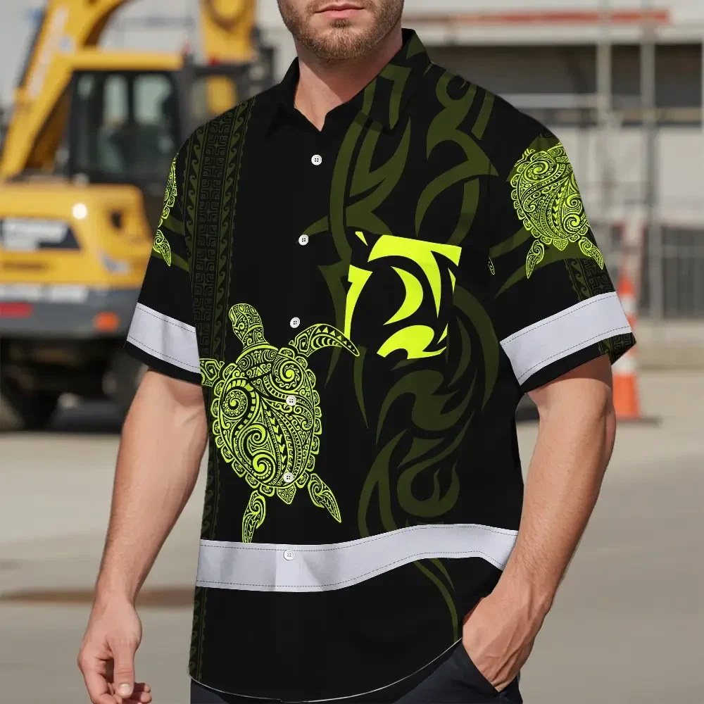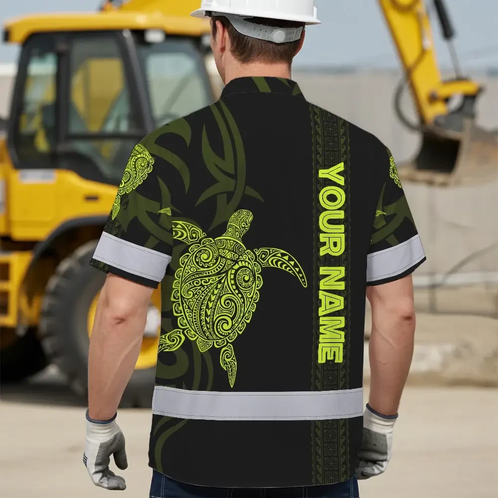Hi Vis Hawaiian Shirt Reflective Tapes Lime Neon Hawaiian Polynesian Tribal Custom Name