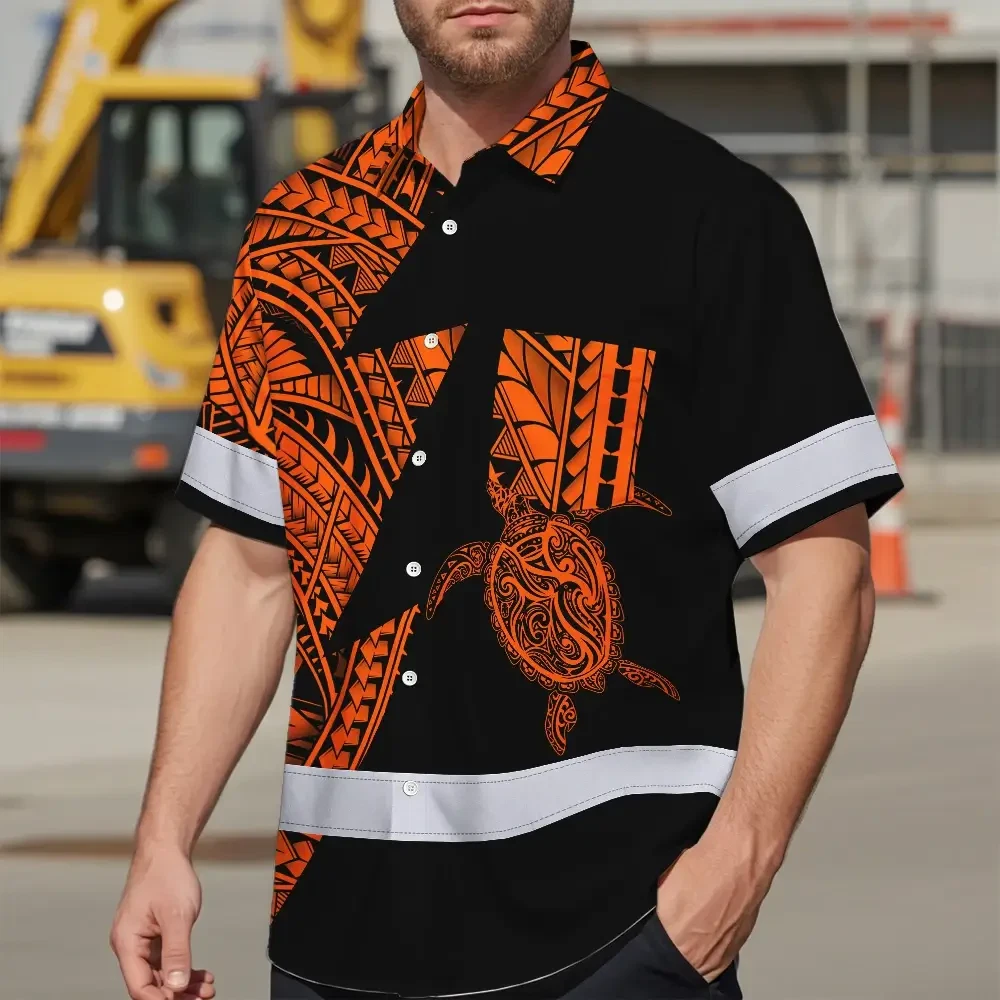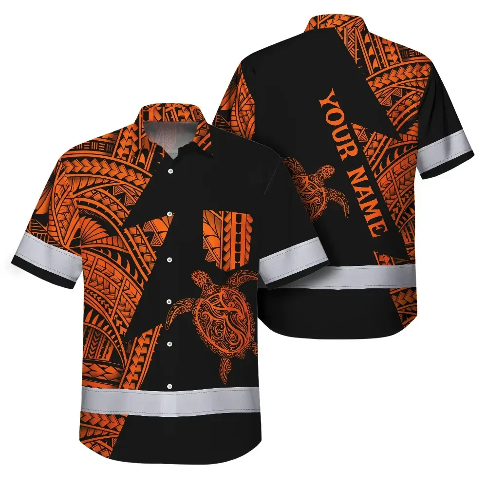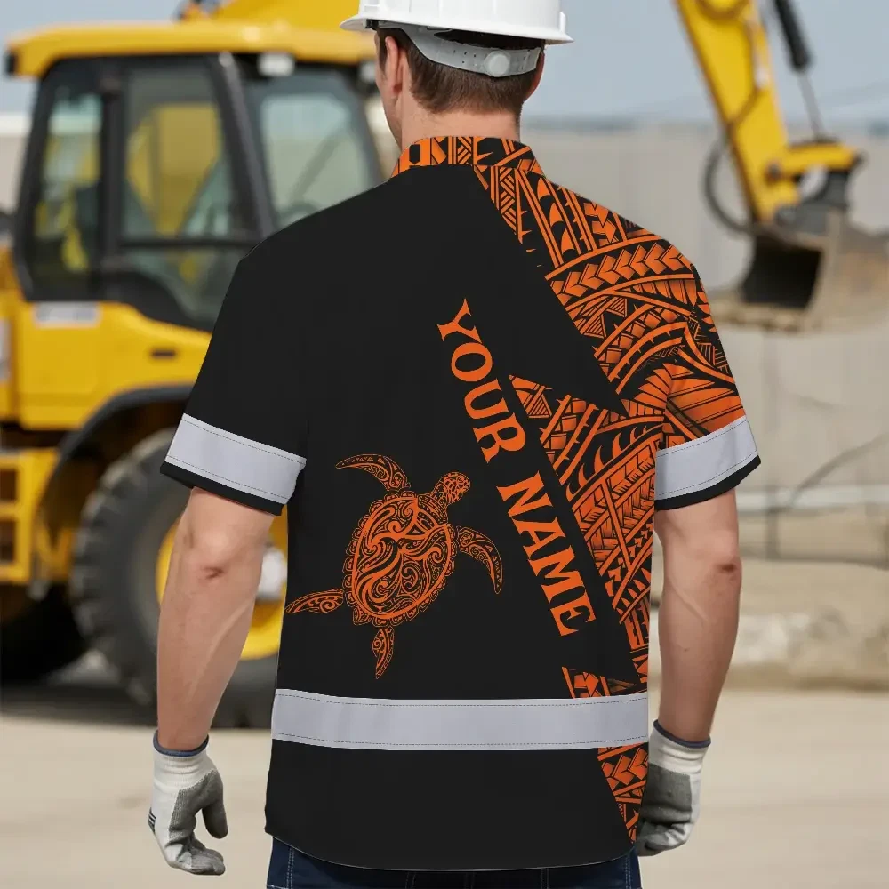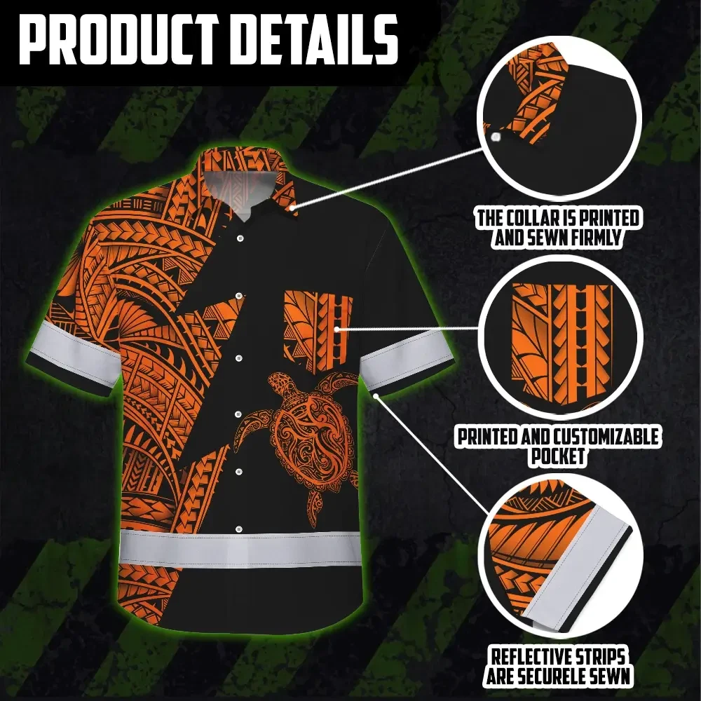 Hi Vis Hawaiian Shirt Reflective Tapes Orange Neon Turtle Hawaii Custom Name