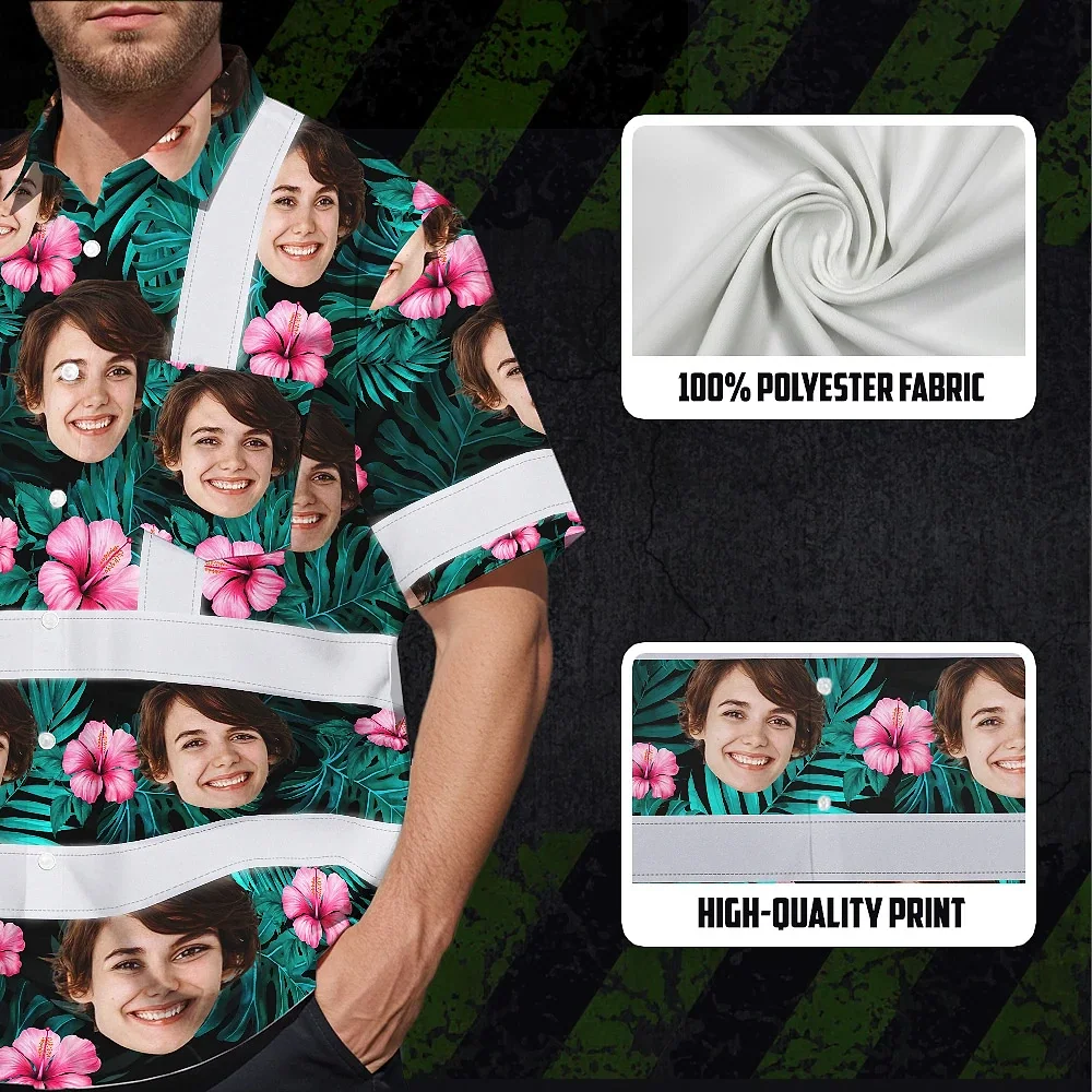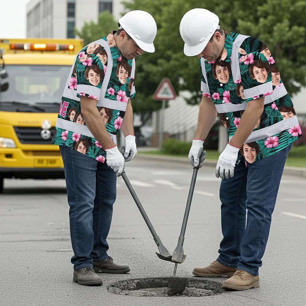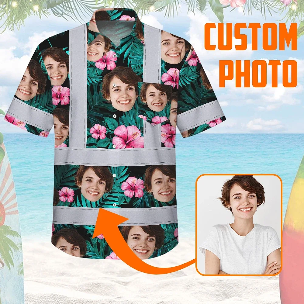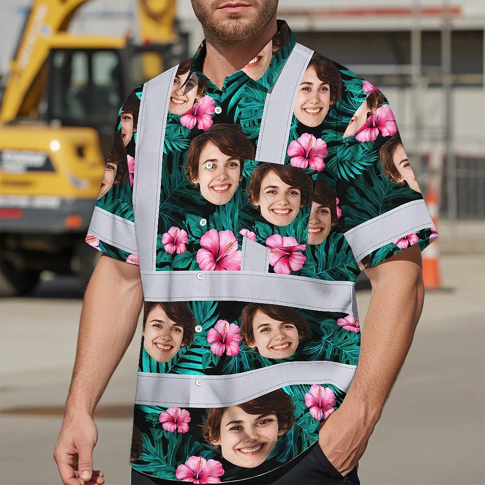 Hi Vis Hawaiian Shirt Reflective Tapes Pink And Green Custom Name And Photo Safety Workwear For Workers, Truckers, Operators