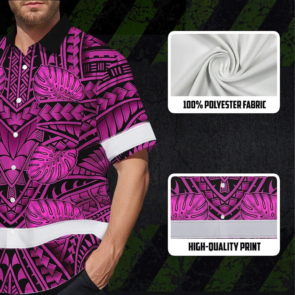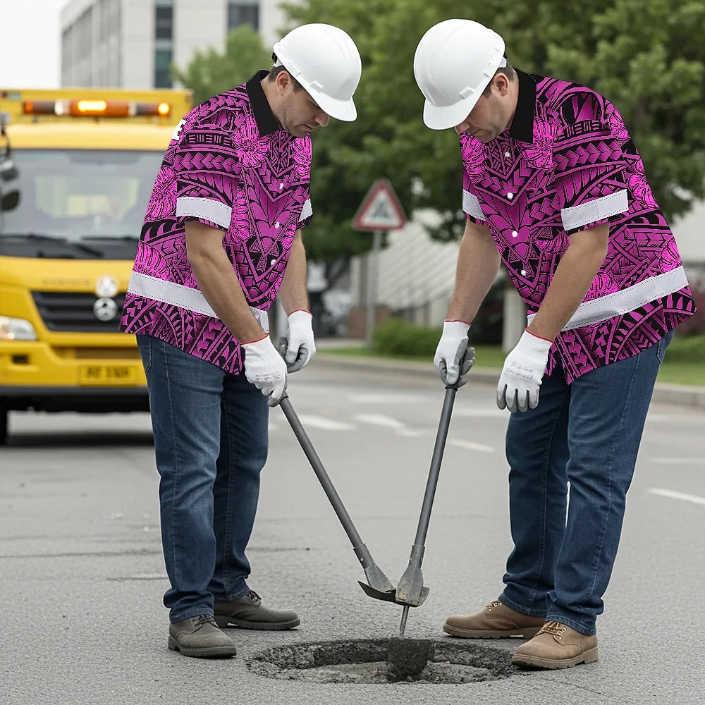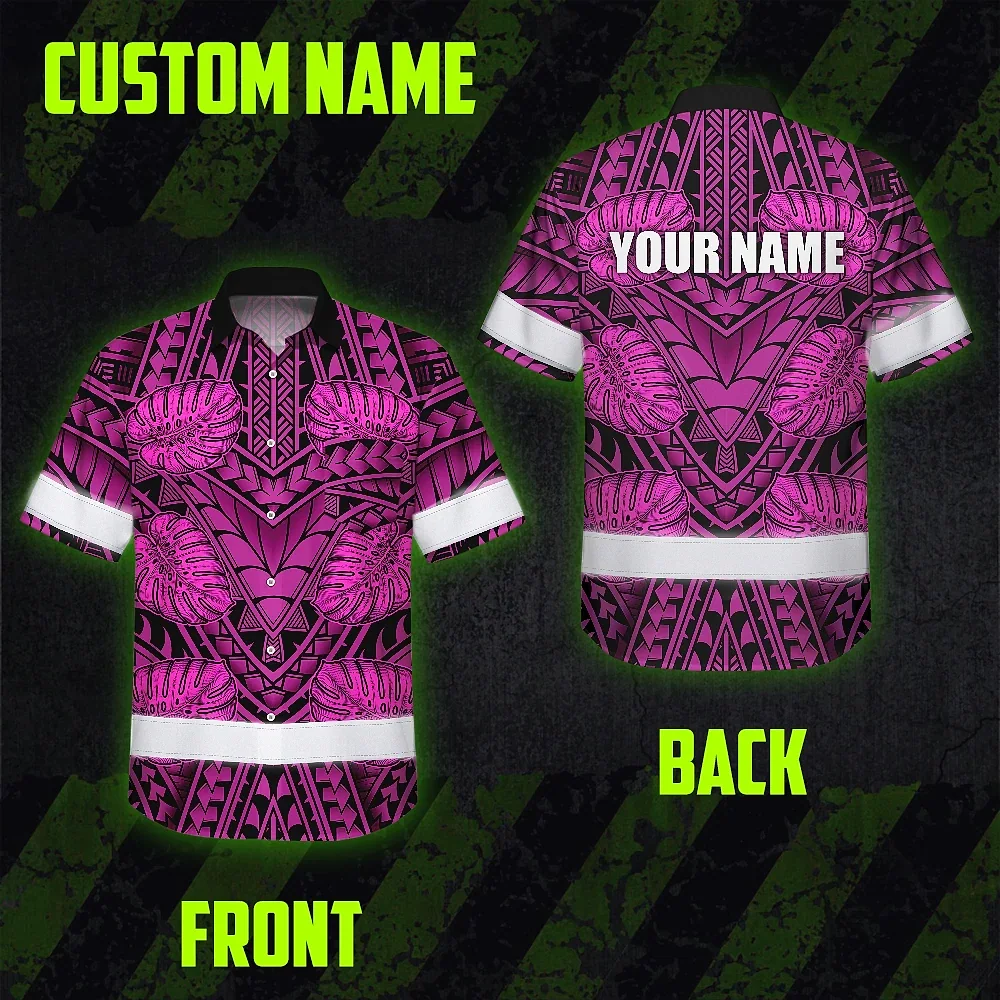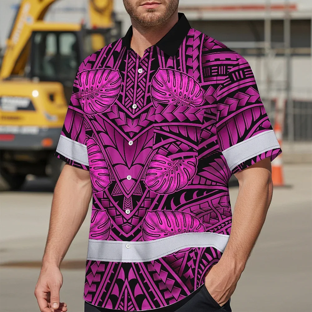 Hi Vis Hawaiian Shirt Reflective Tapes Pink Neon Polynesian Custom Name Safety Workwear For Workers, Truckers, Operators