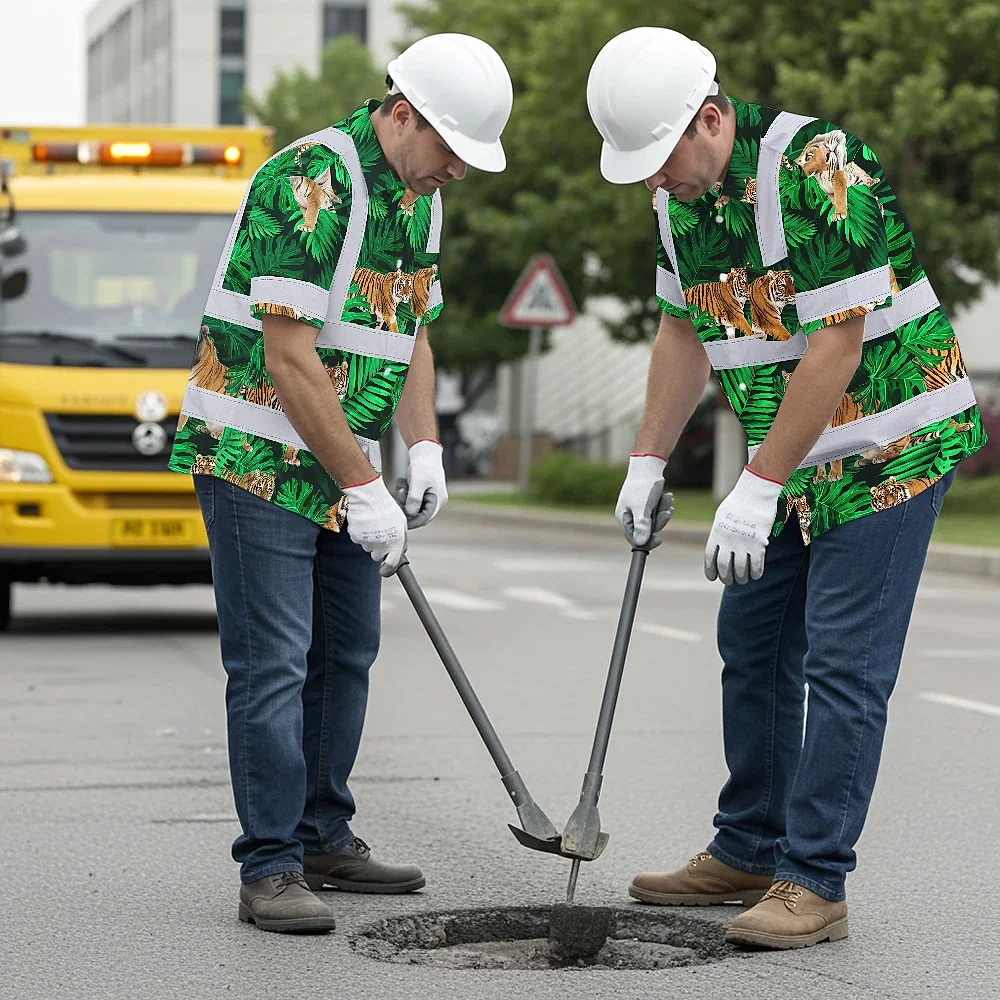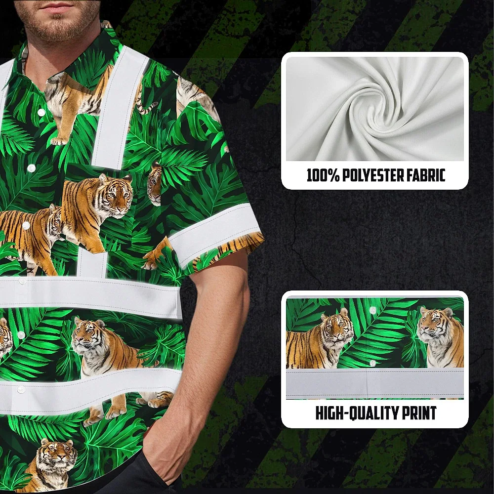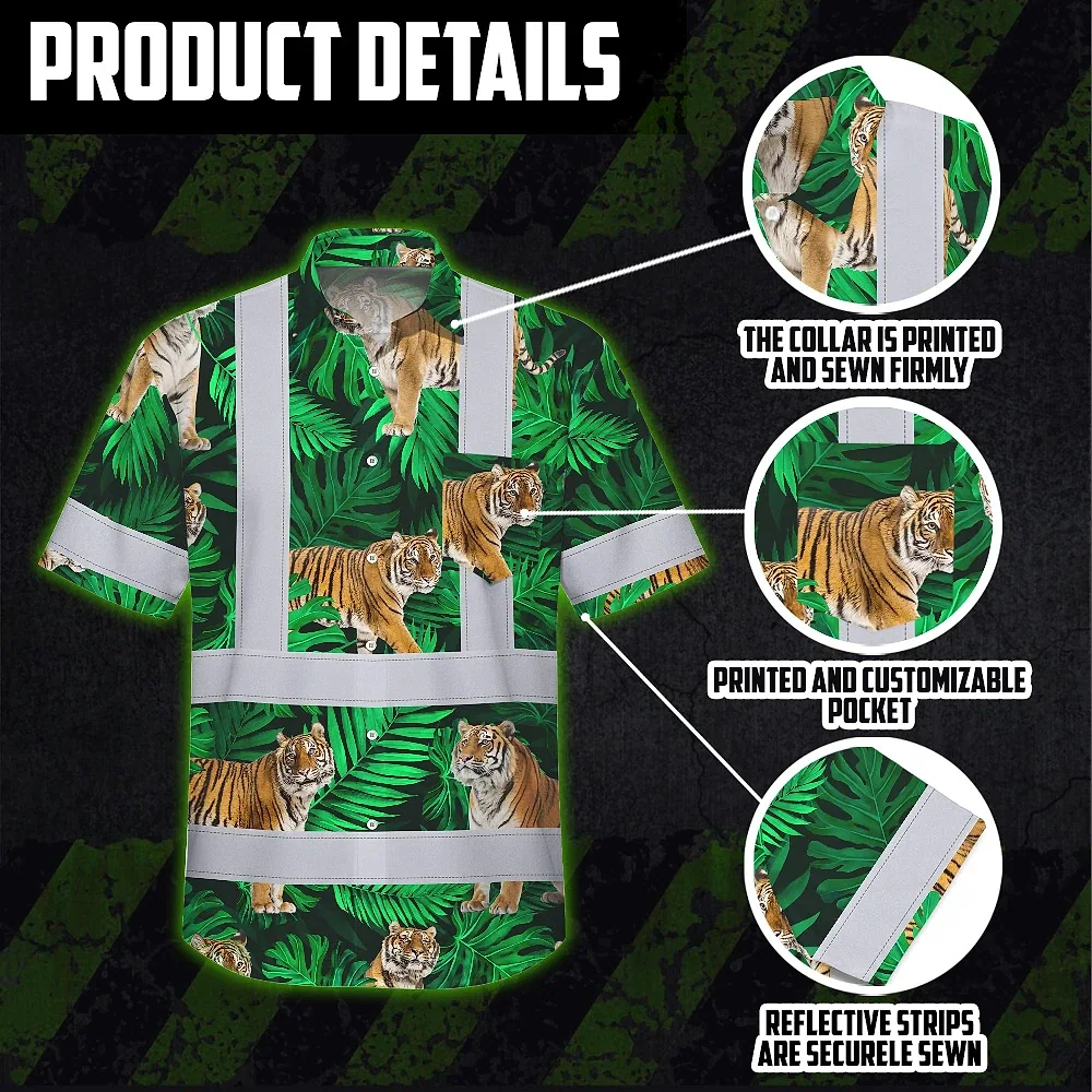 Be the first to review “Hi Vis Hawaiian Shirt Reflective Tapes Tiger Flowers Custom Name Safety Workwear For Workers, Truckers, Operators”