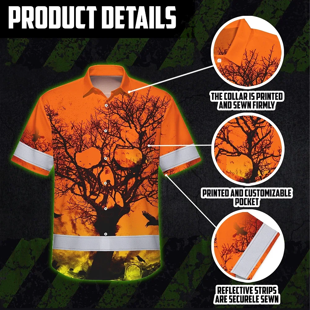 Be the first to review “Hi Vis Hawaiian Skull Shirt, Orange Neon Custom Name High Visibility Short Sleeve Button Down Shirt for Workers, Truckers”
