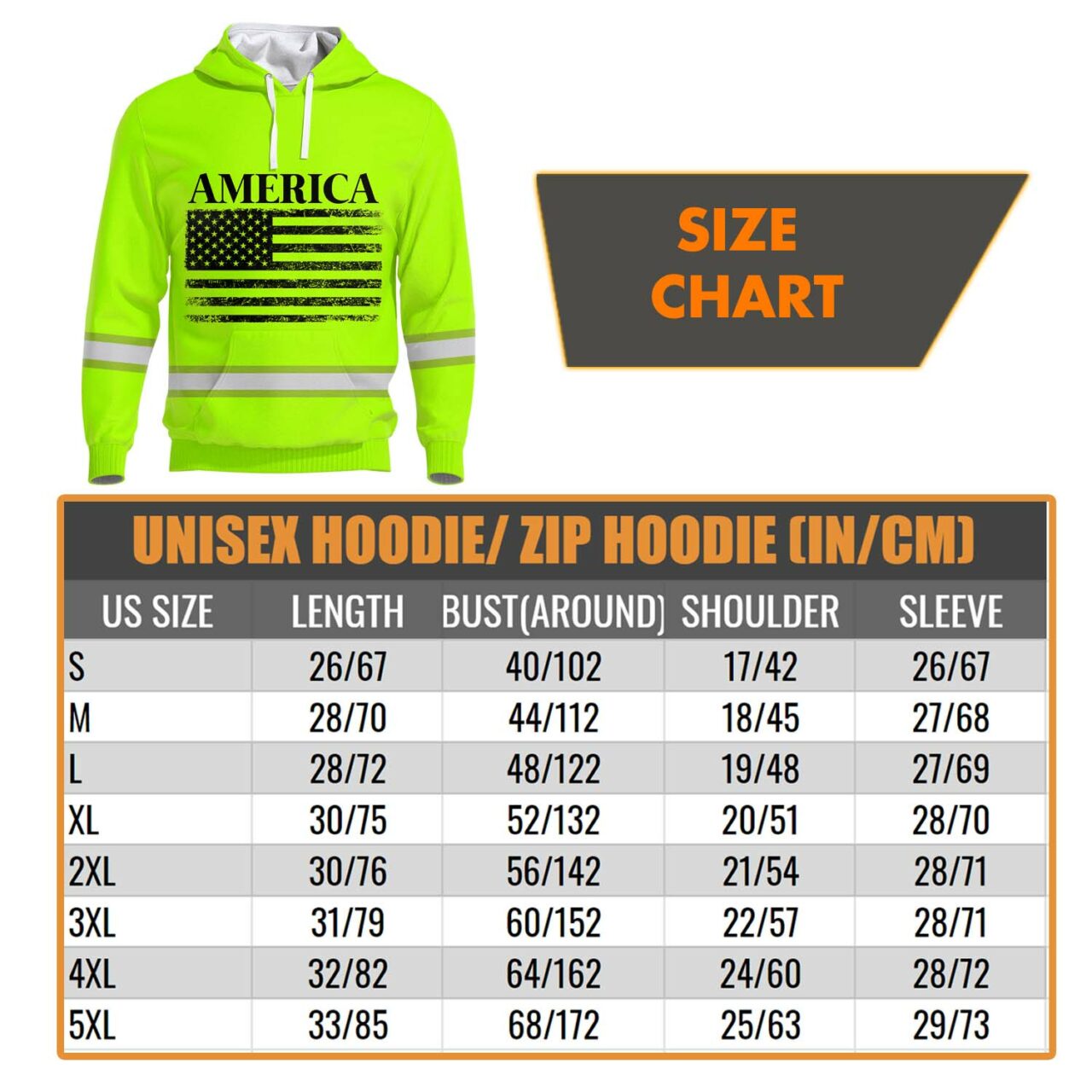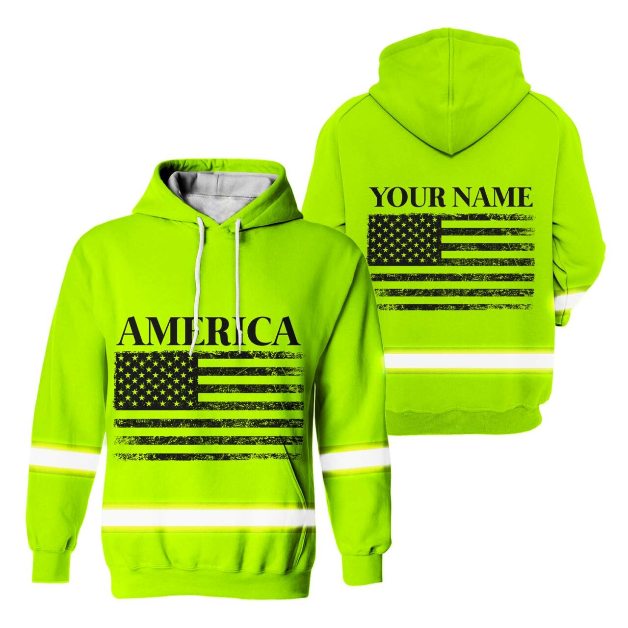 Hi Vis Hoodie Green Black US Flag Custom Name Safety Workwear For Worker, Operator, Trucker, Patriotic, Patriot Description