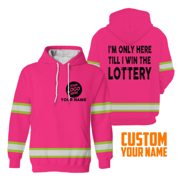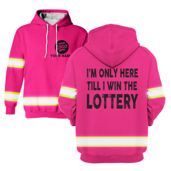 Hi Vis Hoodie I'm Only Here Till I Win The Lottery Pink Custom Name and Logo Company Name Safety Workwear quantity