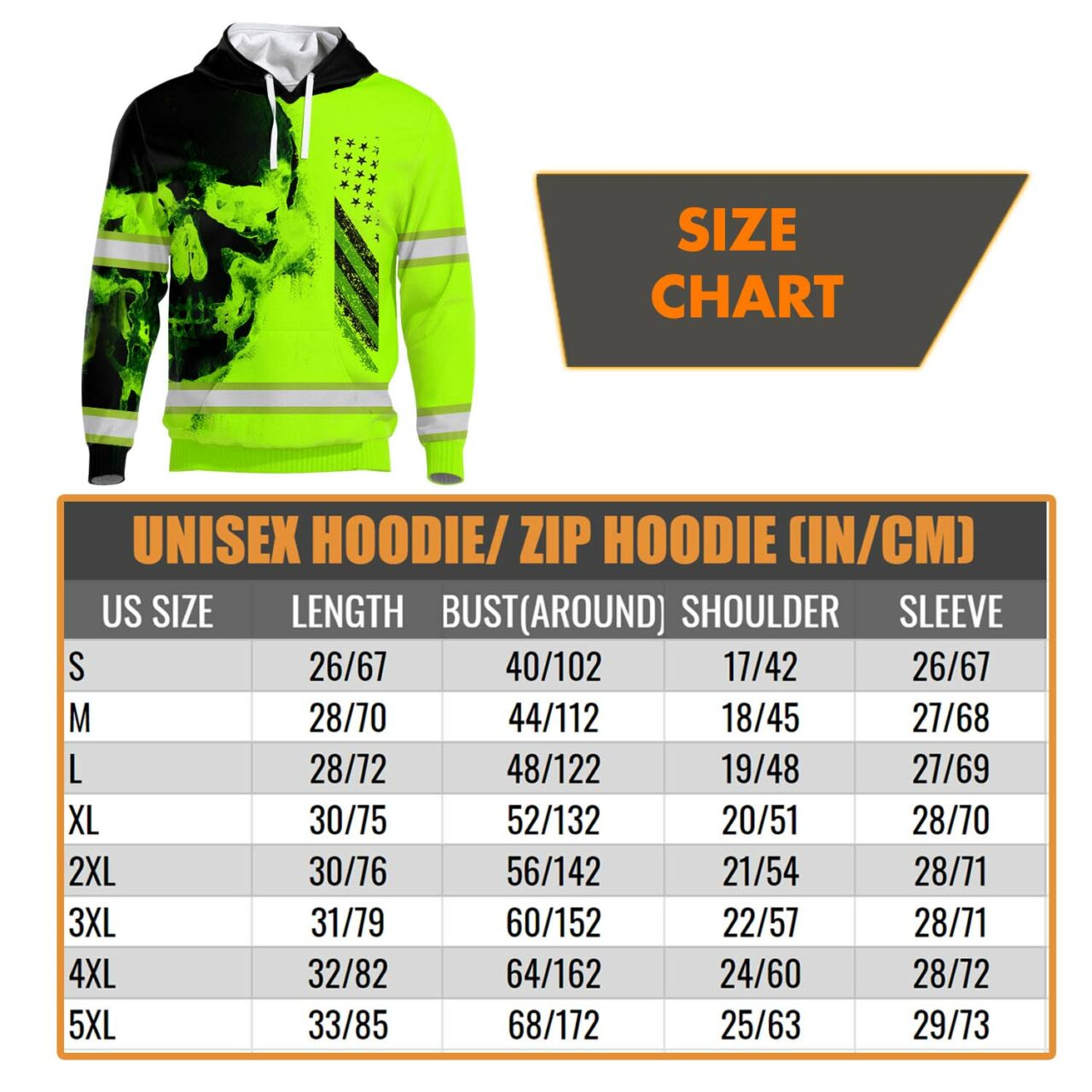 Hi Vis Hoodie Reflective Black Skull USA Flag Custom Name Safety Workwear