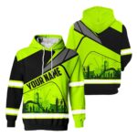 Hi Vis Reflective Green Vest Custom Name Hoodie Safety Workwear