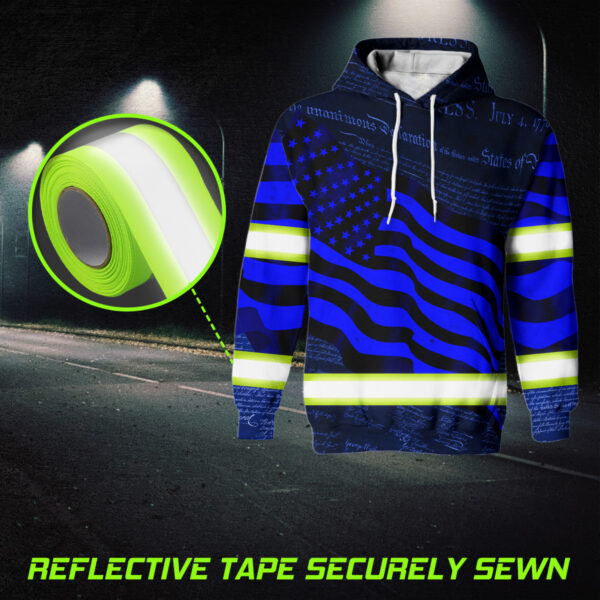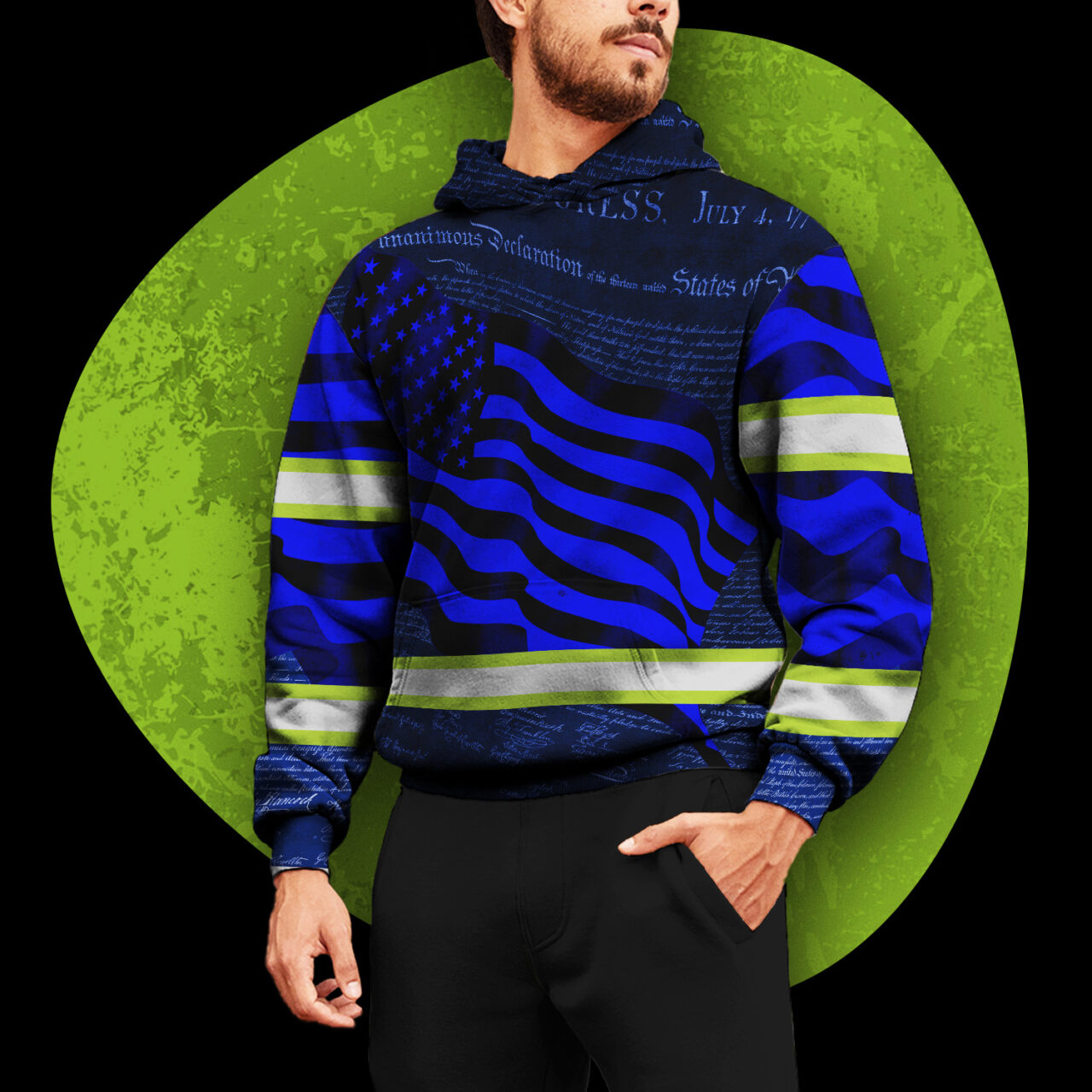 Hi Vis Hoodie Reflective Blue Neon Independence USA Flag