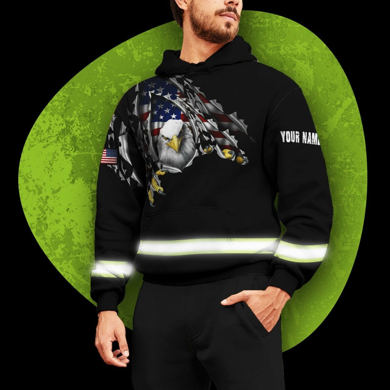 Hi Vis Hoodie Reflective Eagle Custom Name Safety Workwear Description