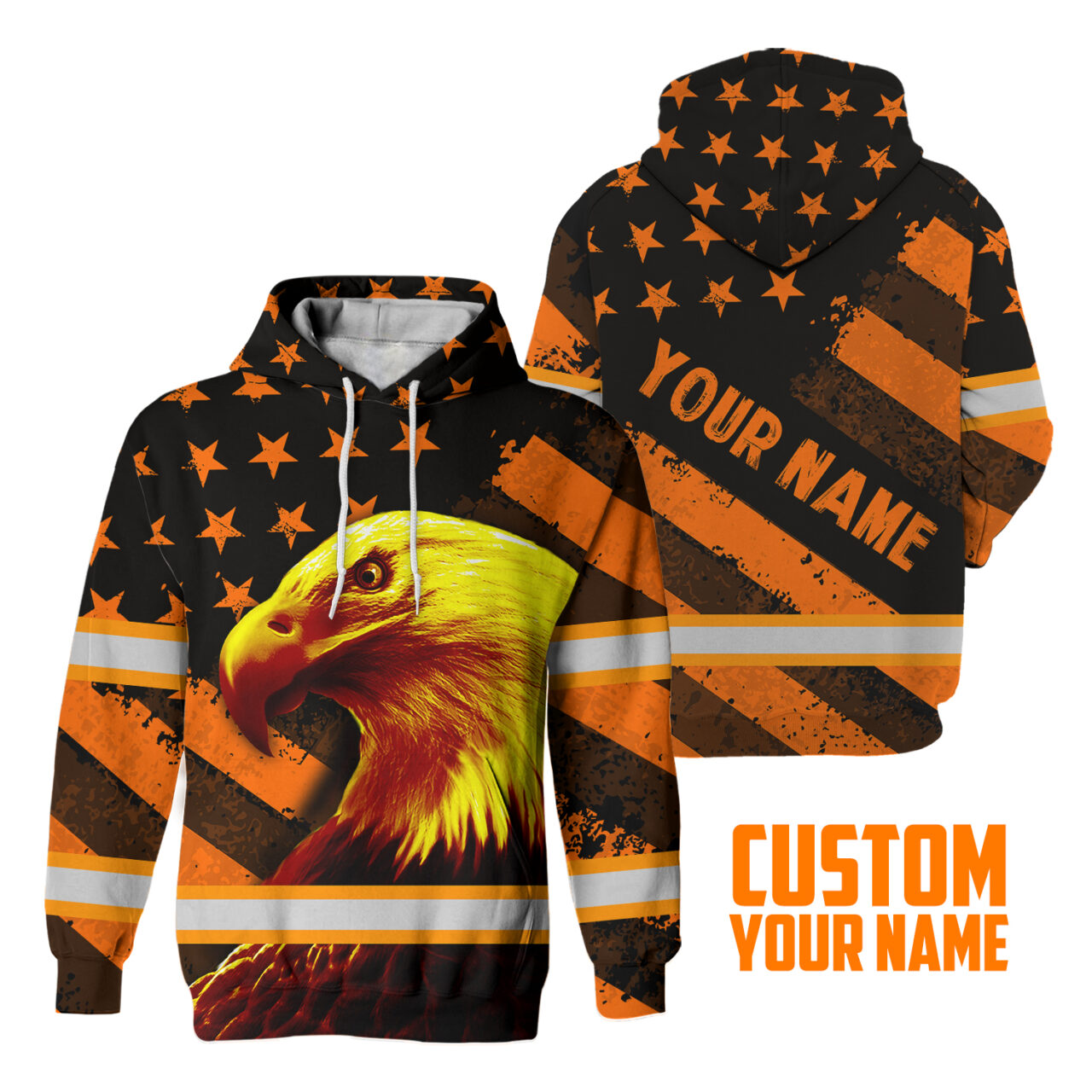 Hi Vis Hoodie Reflective Eagle Us Flag Orange Safety Workwear